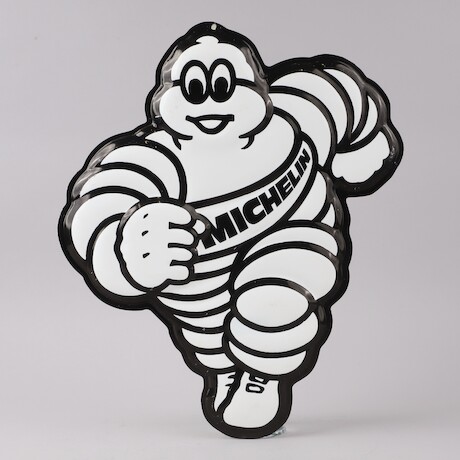 Michelinskylt, plast, H = 48, klockradio och miniatyrbyrå