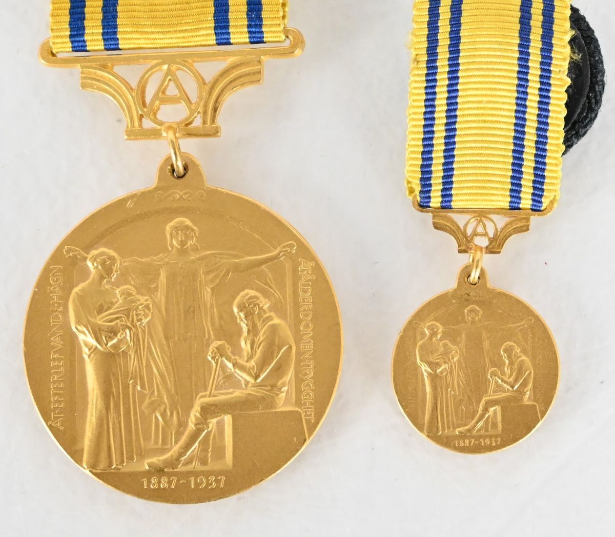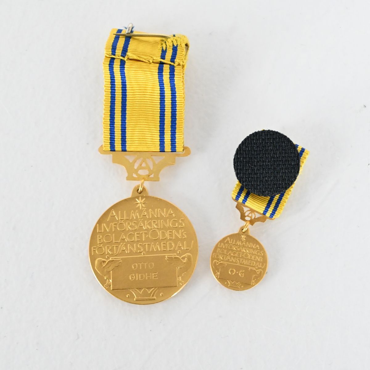 Förtjänstmedaljer, 2 st, Allmänna Livförsäkringsbolaget Oden, Guld 18K