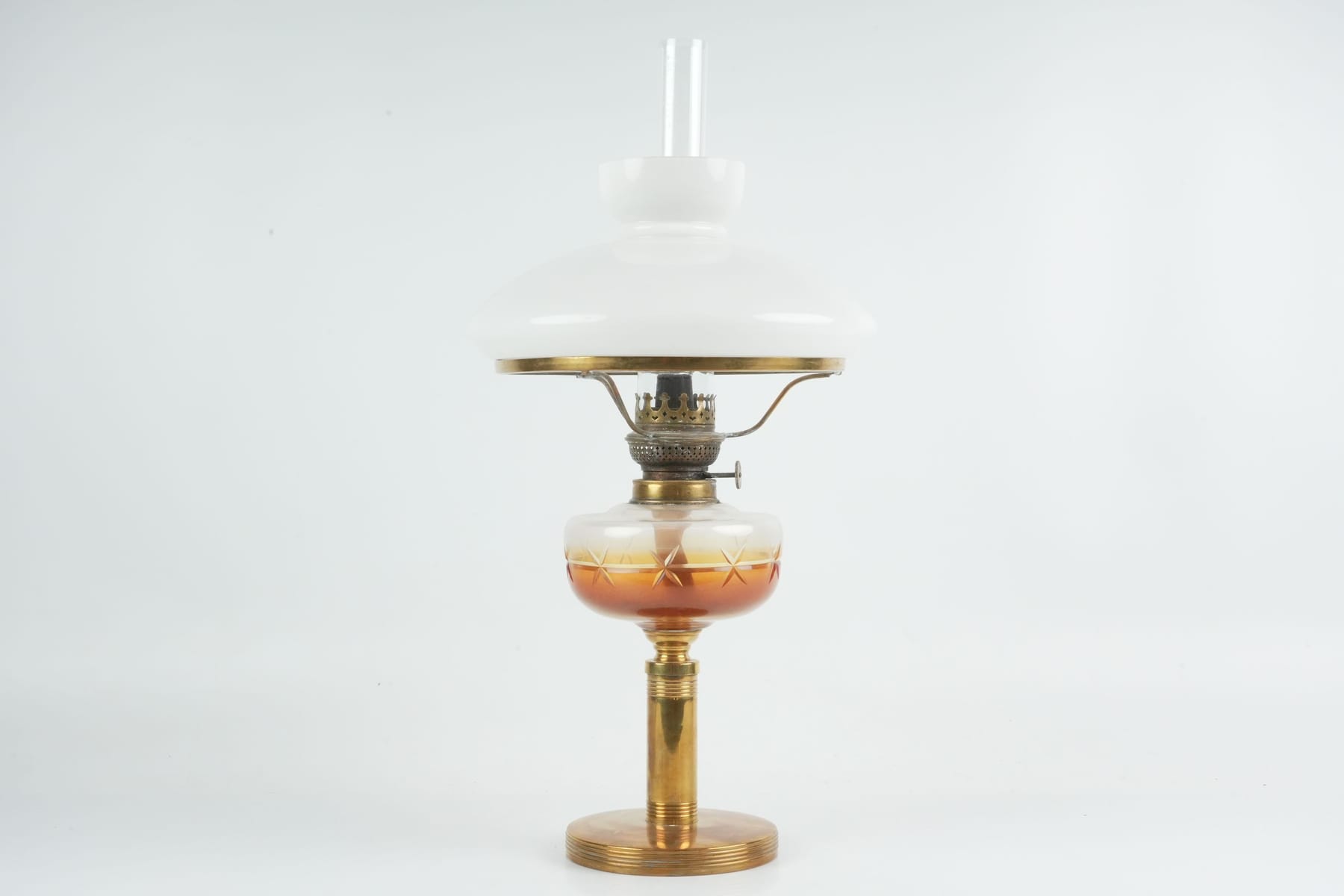 BORDSFOTOGENLAMPA, mässing med oljehus i glas, 1800/1900-tal