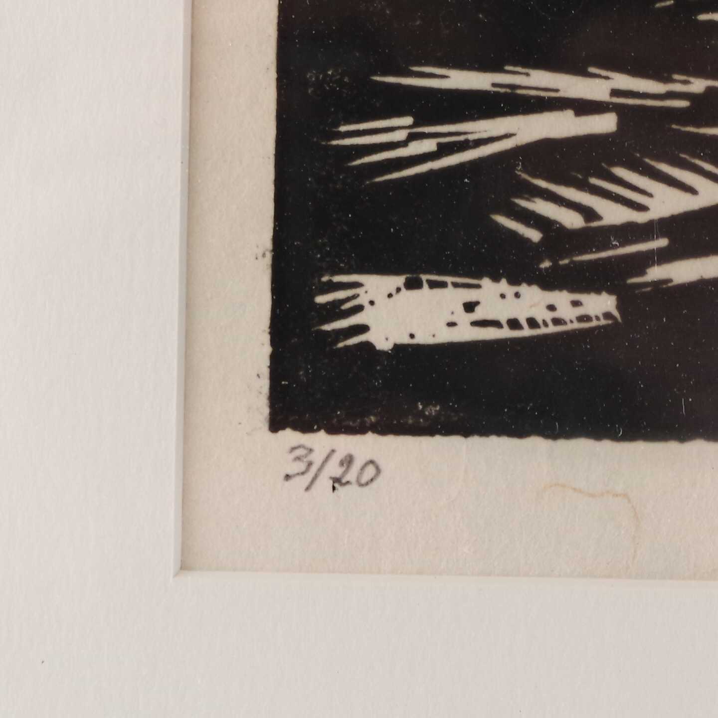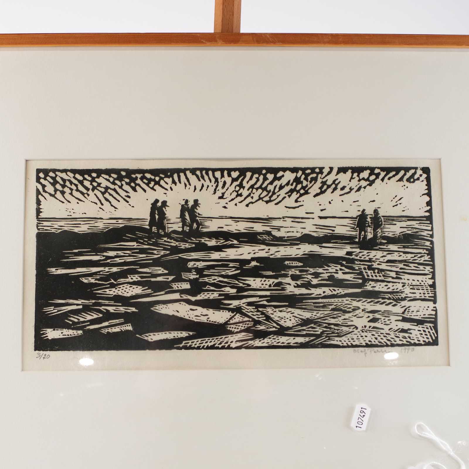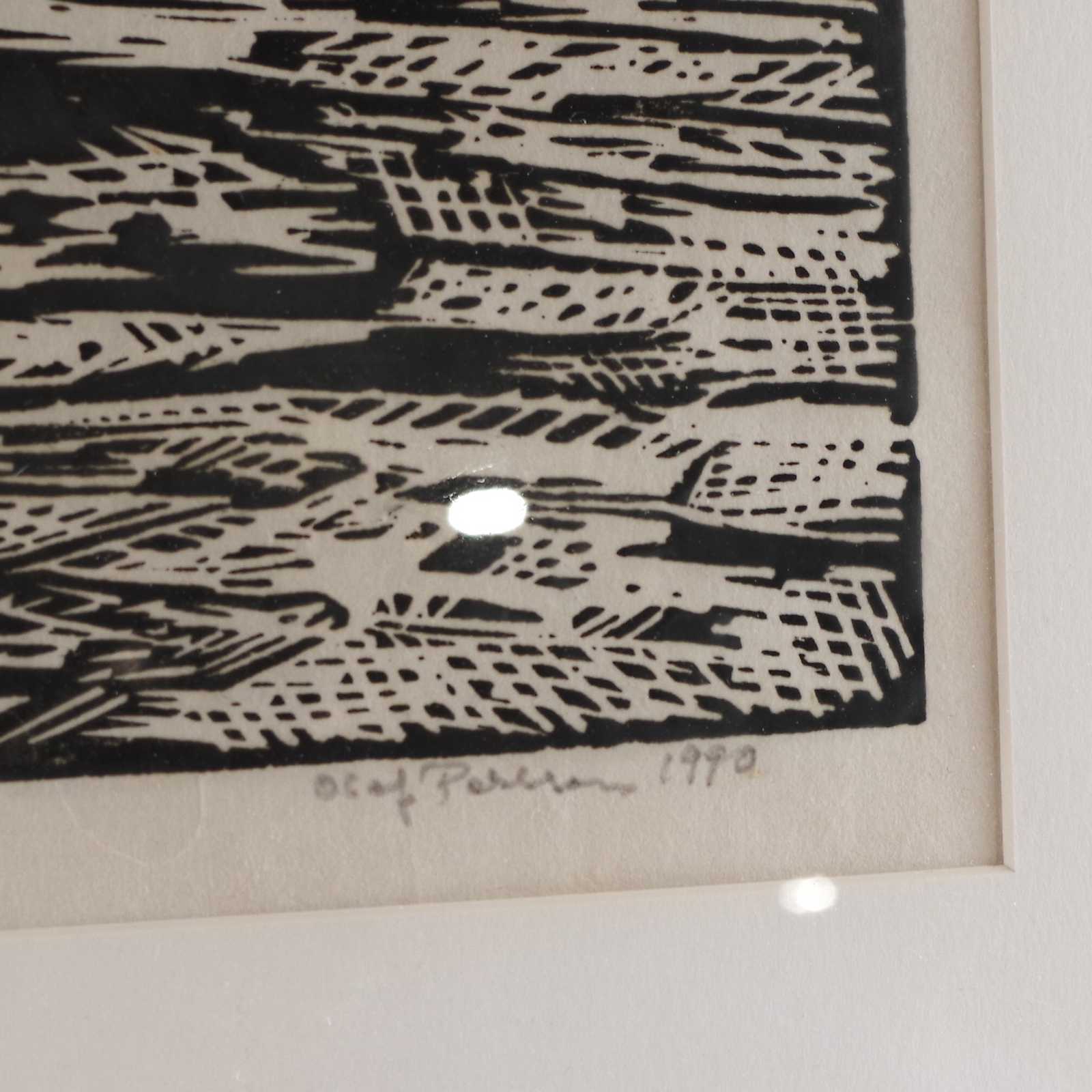 Bilder TAVLA Olof Persson, Linoliumsnitt. 33x15cm. bildmått.