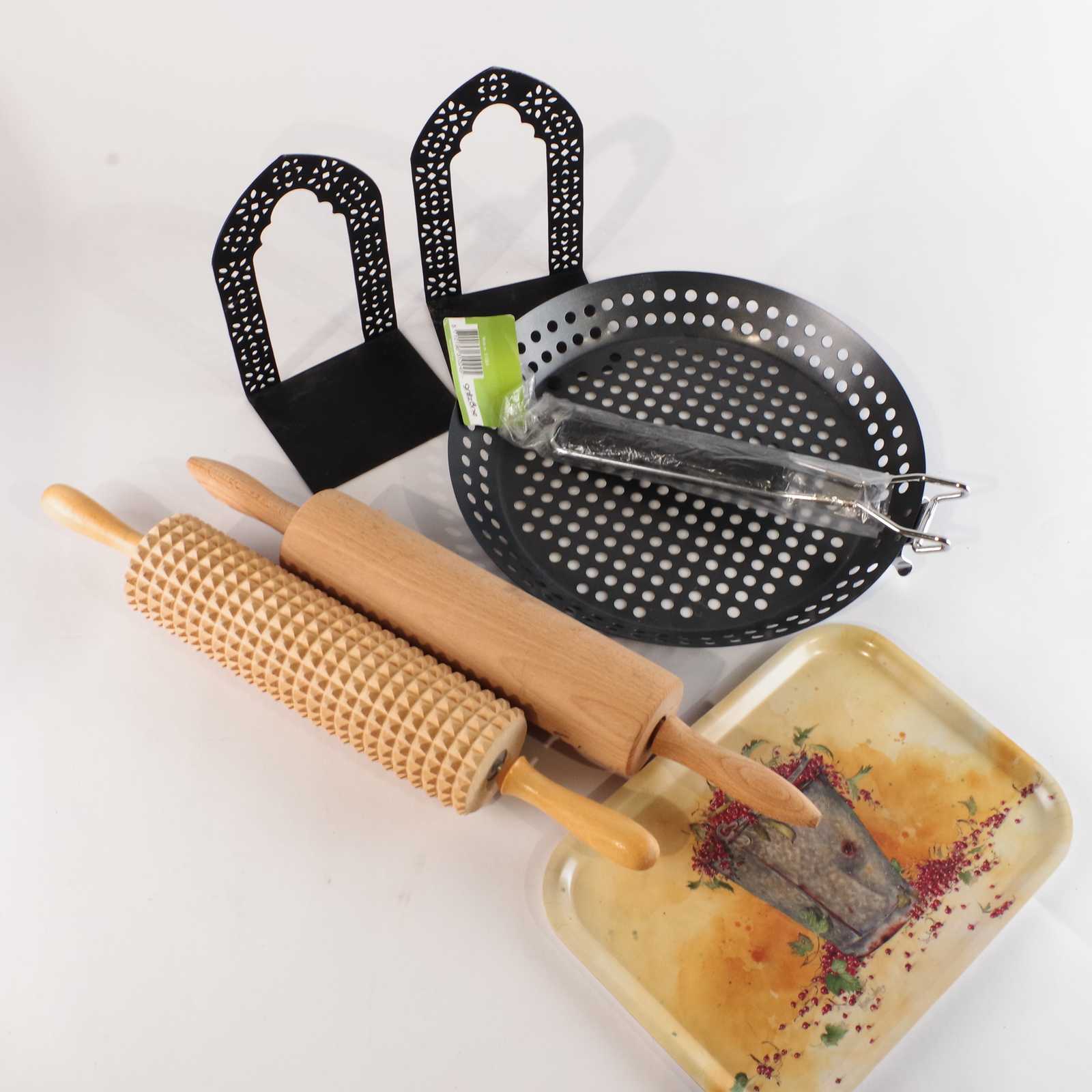 Bilder parti BLANDAT bla brödkavel, bricka och bokstöd.