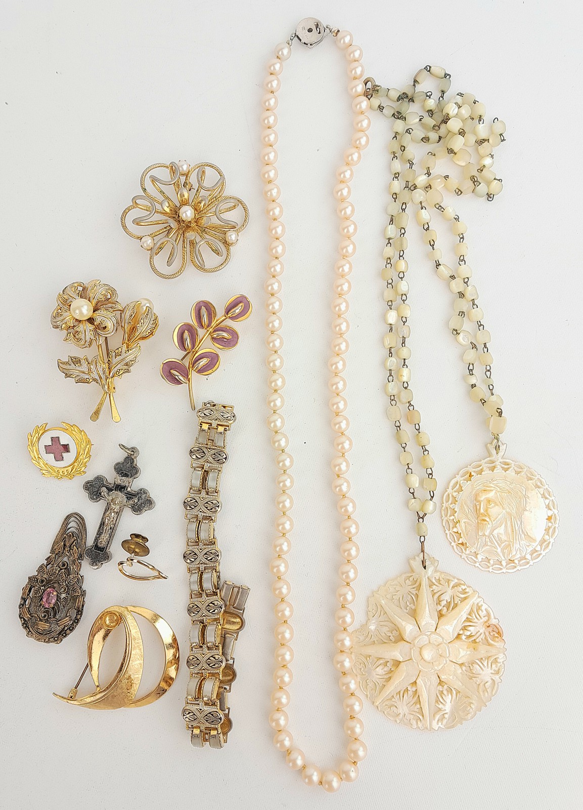 SMYCKESKRIN MED ÄLDRE SMYCKEN, TVÅ FICKUR