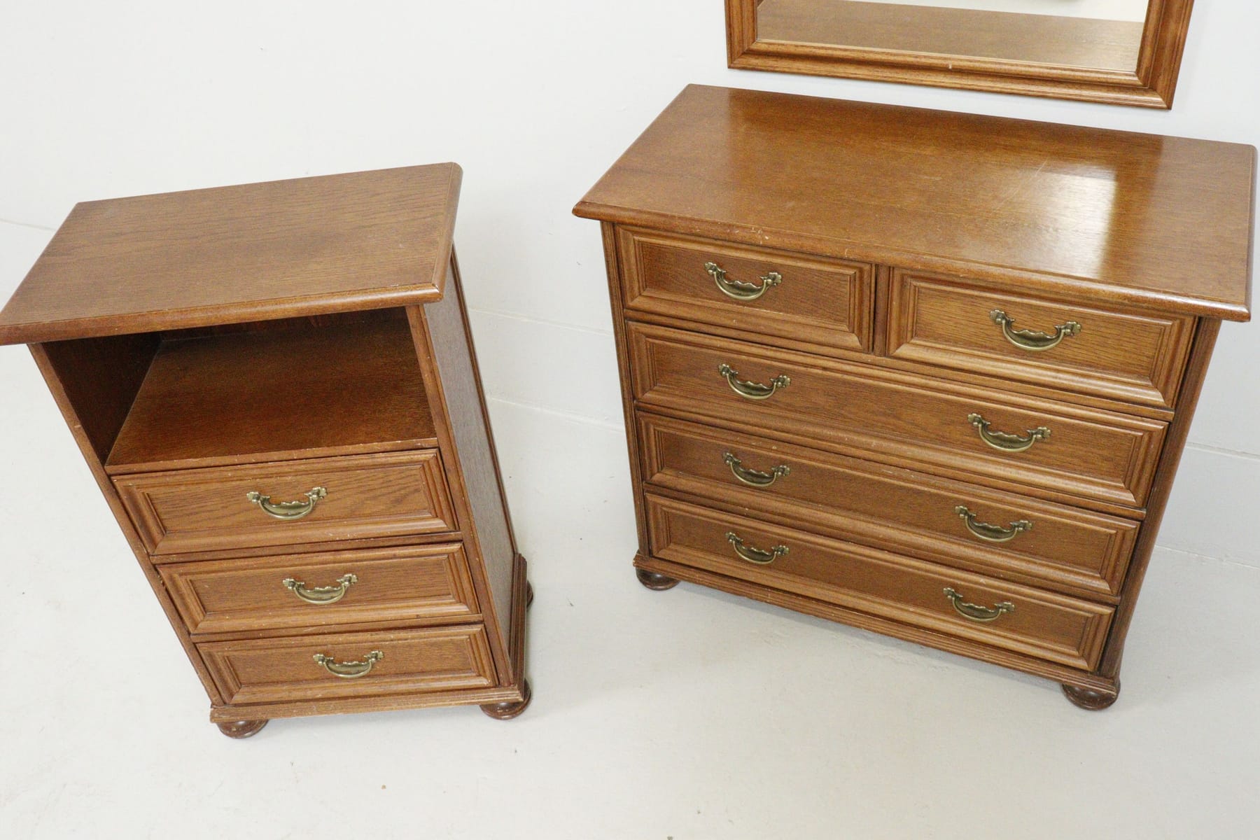 Byråer, 2st, samt spegel, ek