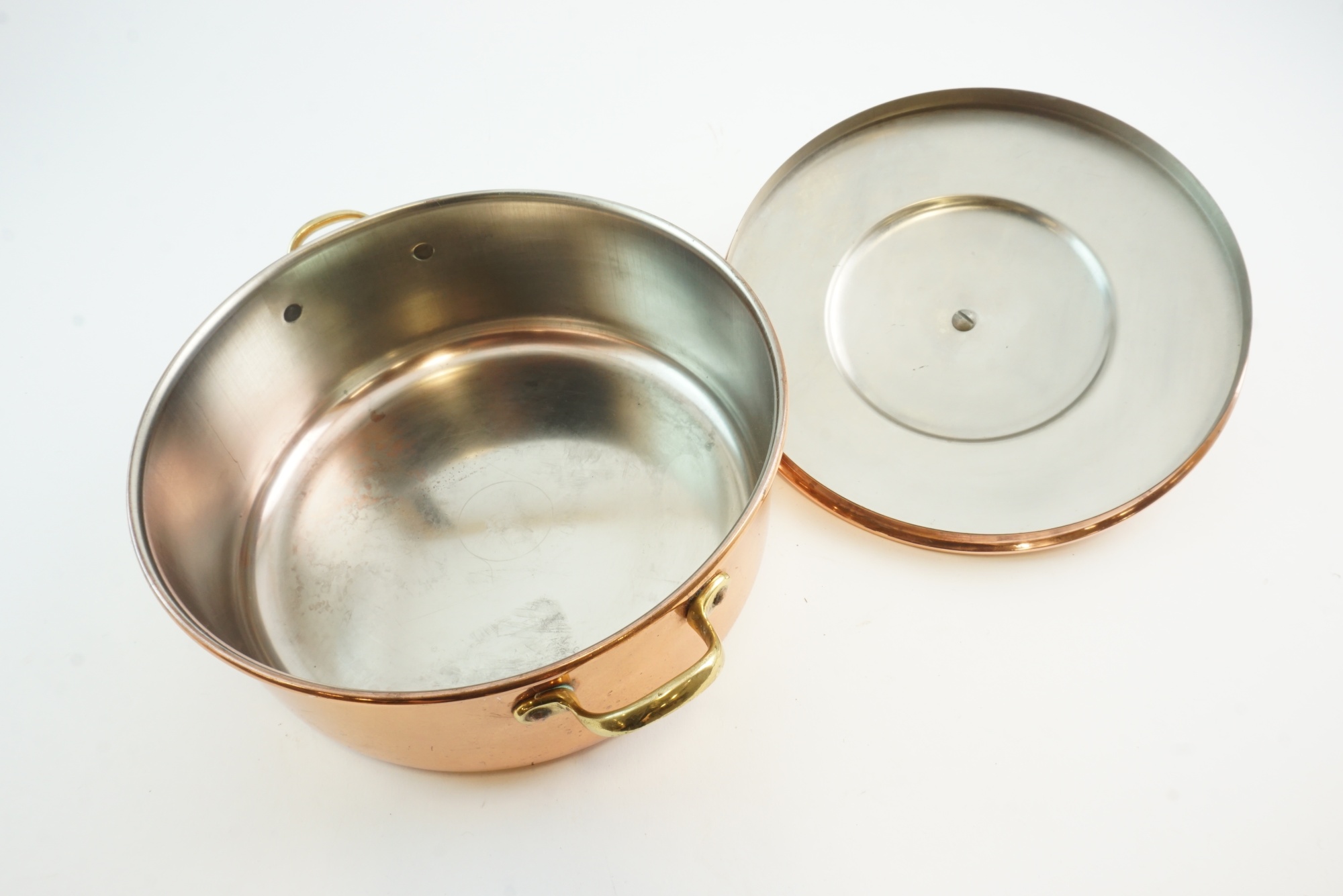 Gryta med mässings detaljer.