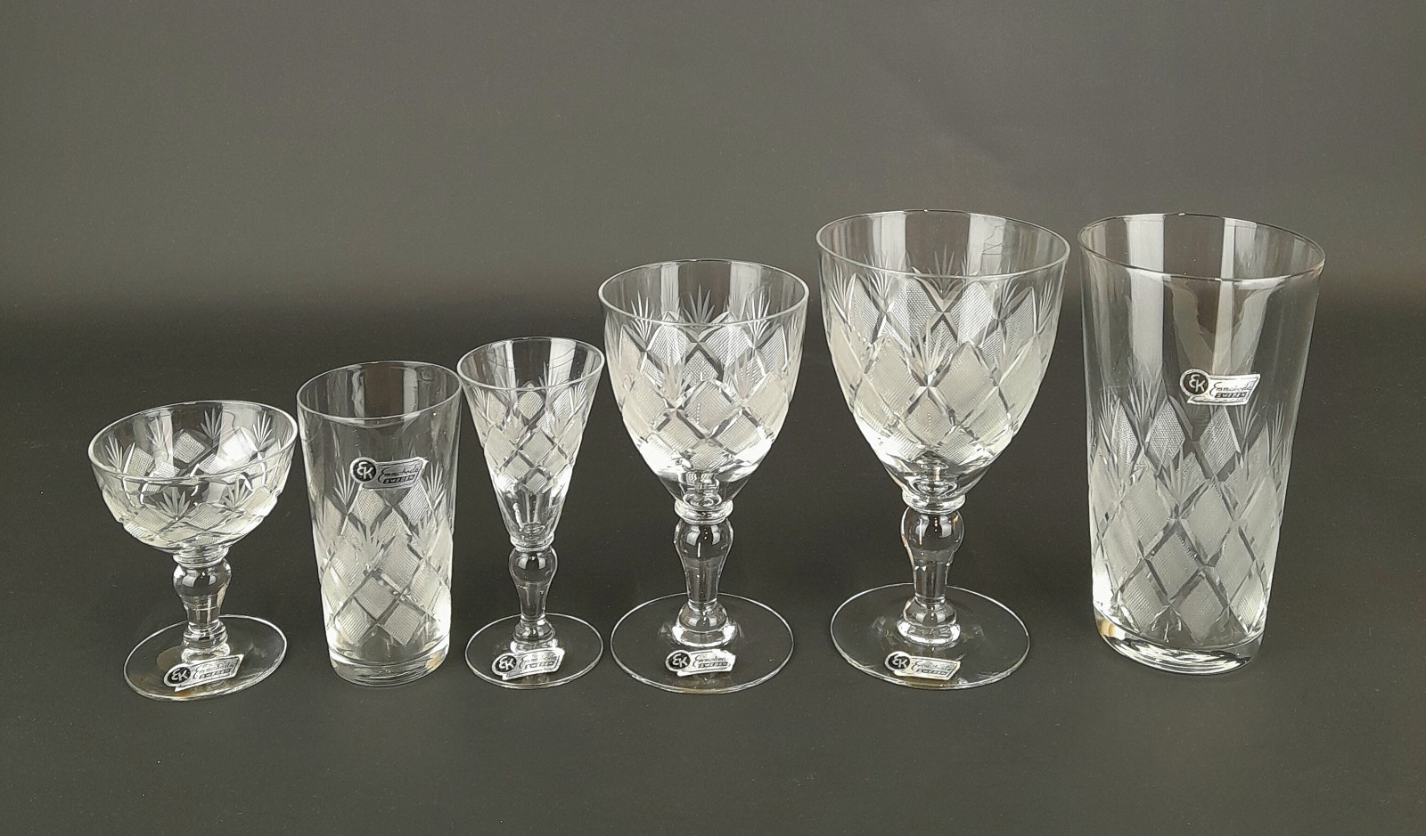 Bilder GLASSERVIS, 45 DELAR, SLIPAT RUTMÖNSTER, EK EMMABODA
