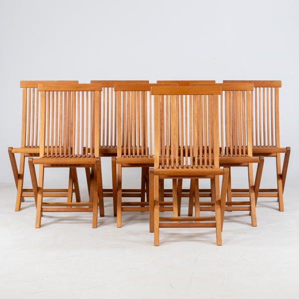 GUNILLA NORIN, 8 st, fällstolar, teak, "Viken", för Skargaarden