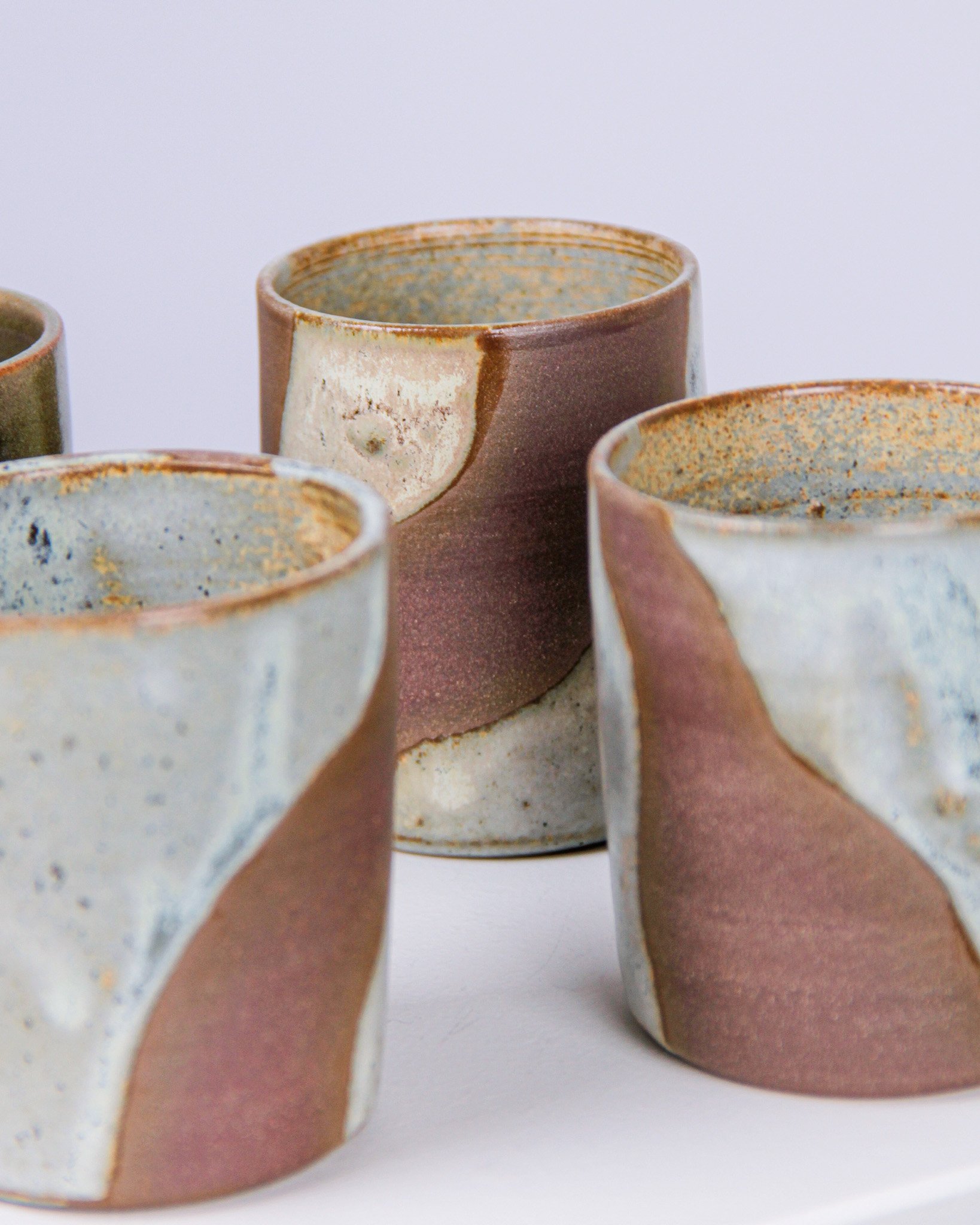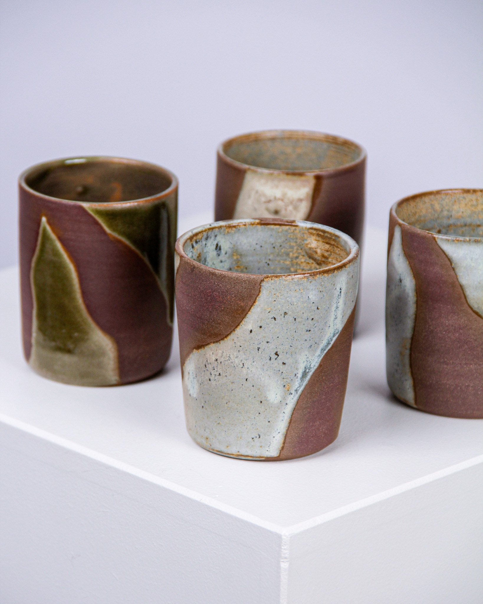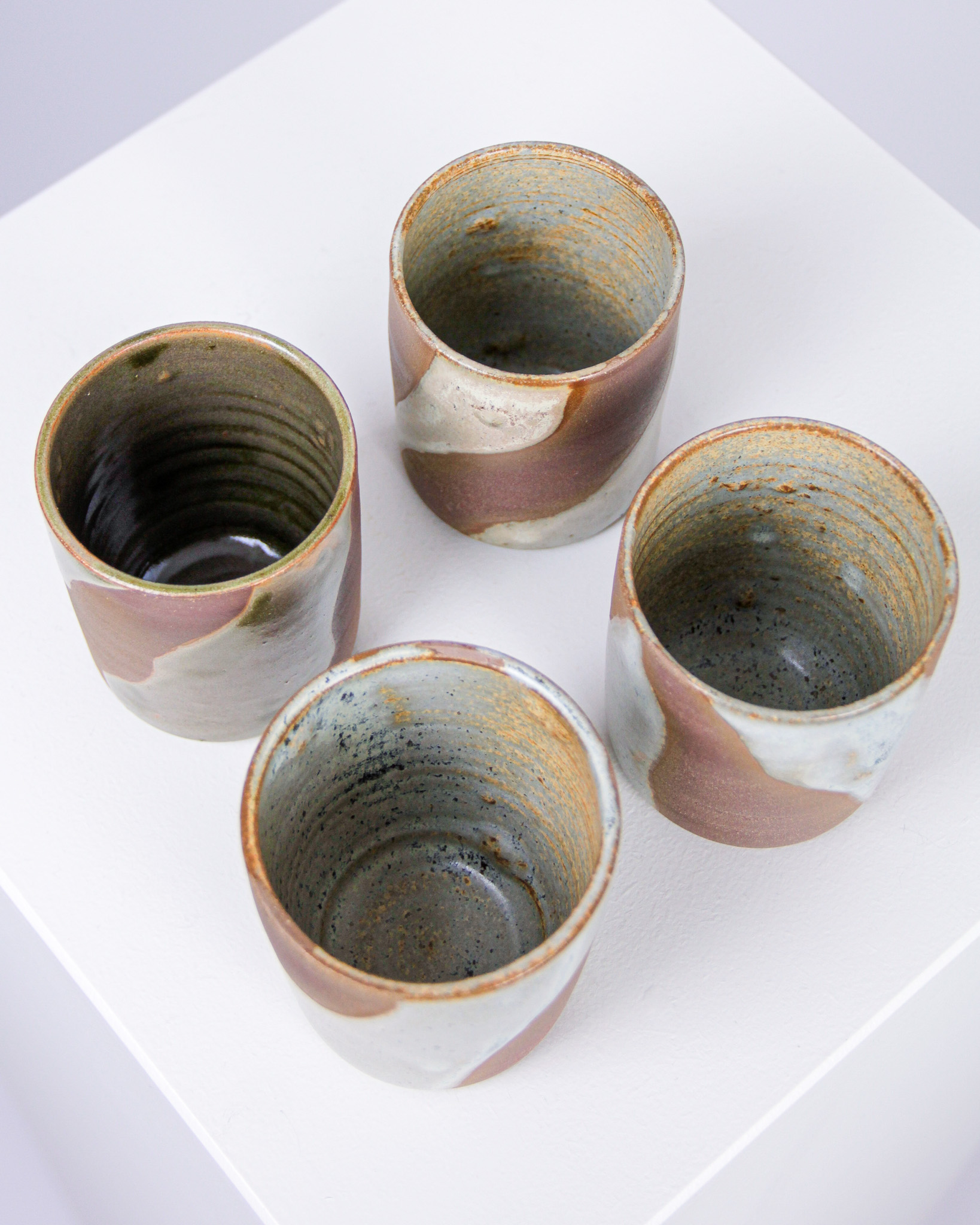 Muggar, 4 st, Mattis Rosenbaum, glaserat stengods, signerade