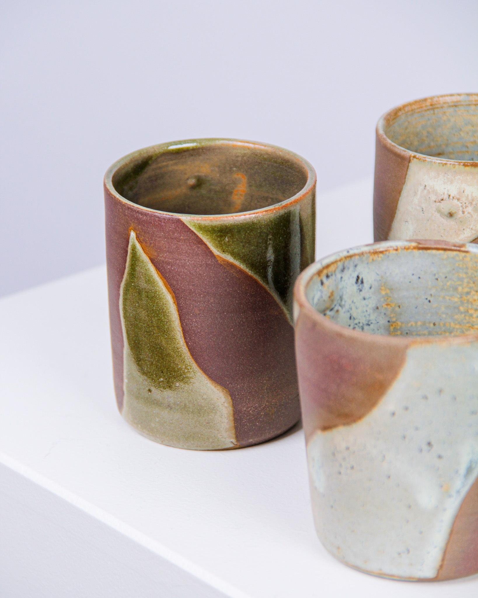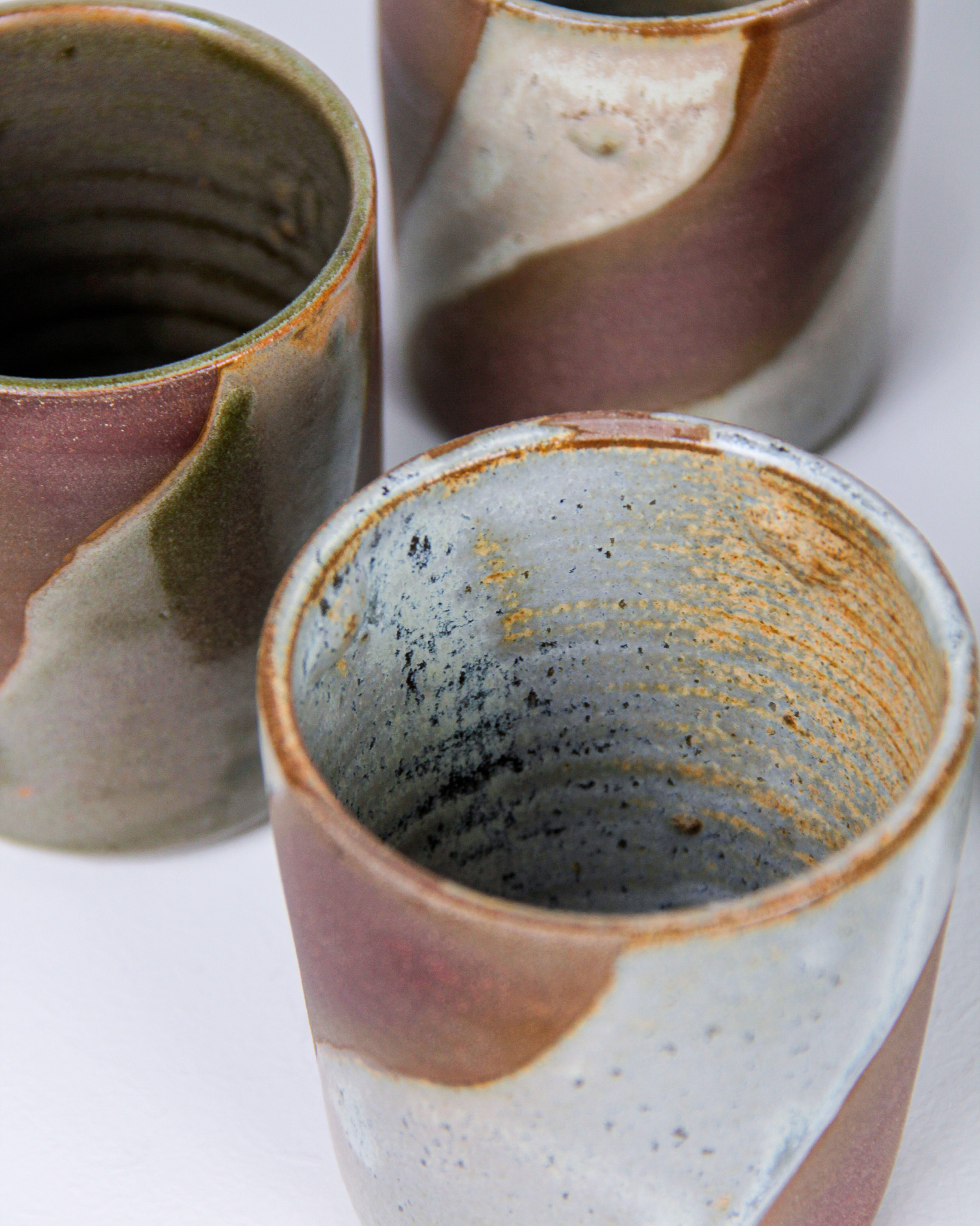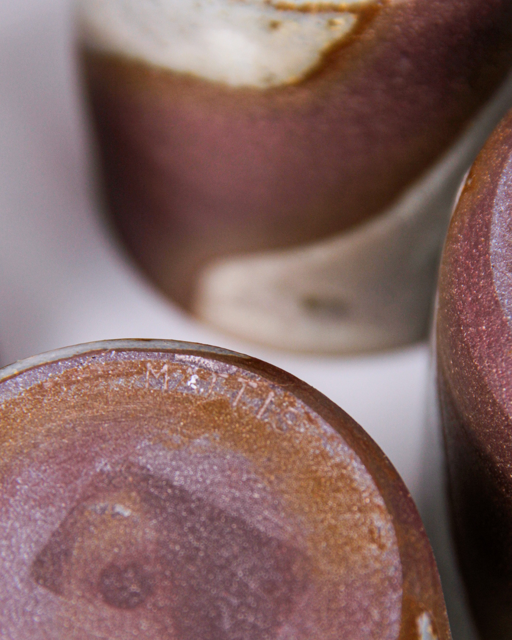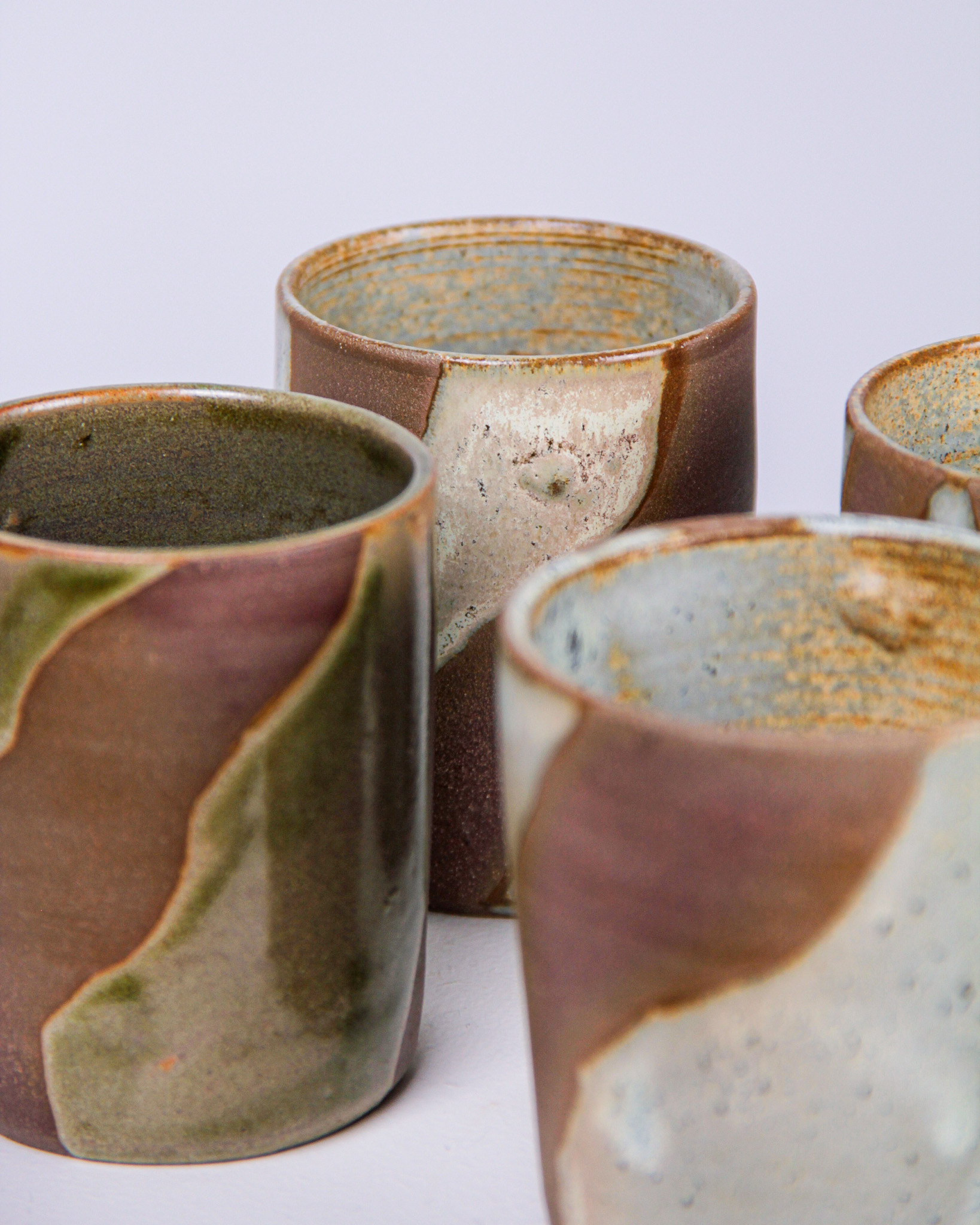 Muggar, 4 st, Mattis Rosenbaum, glaserat stengods, signerade