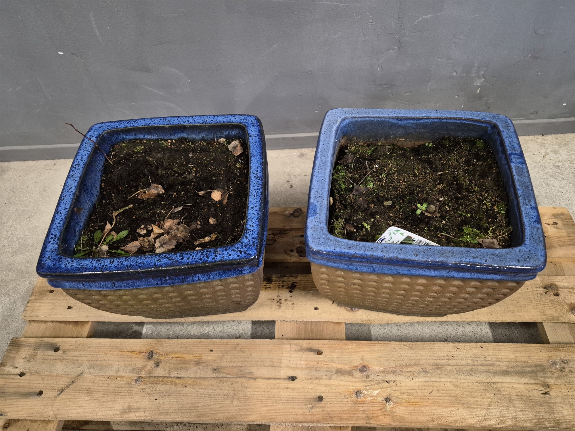 Trädgårdskrukor 1 par keramik blå kant, döjd 30 cm