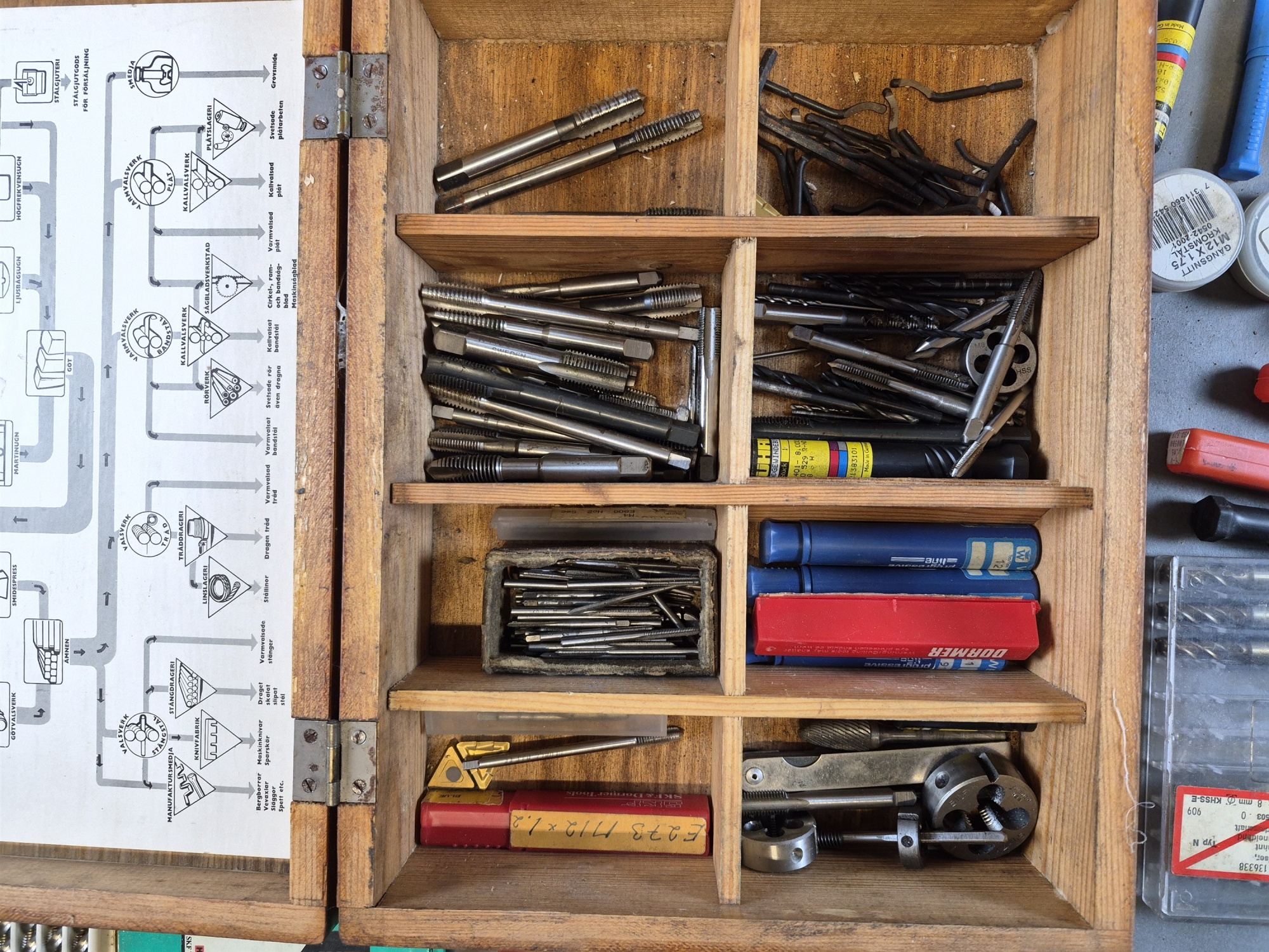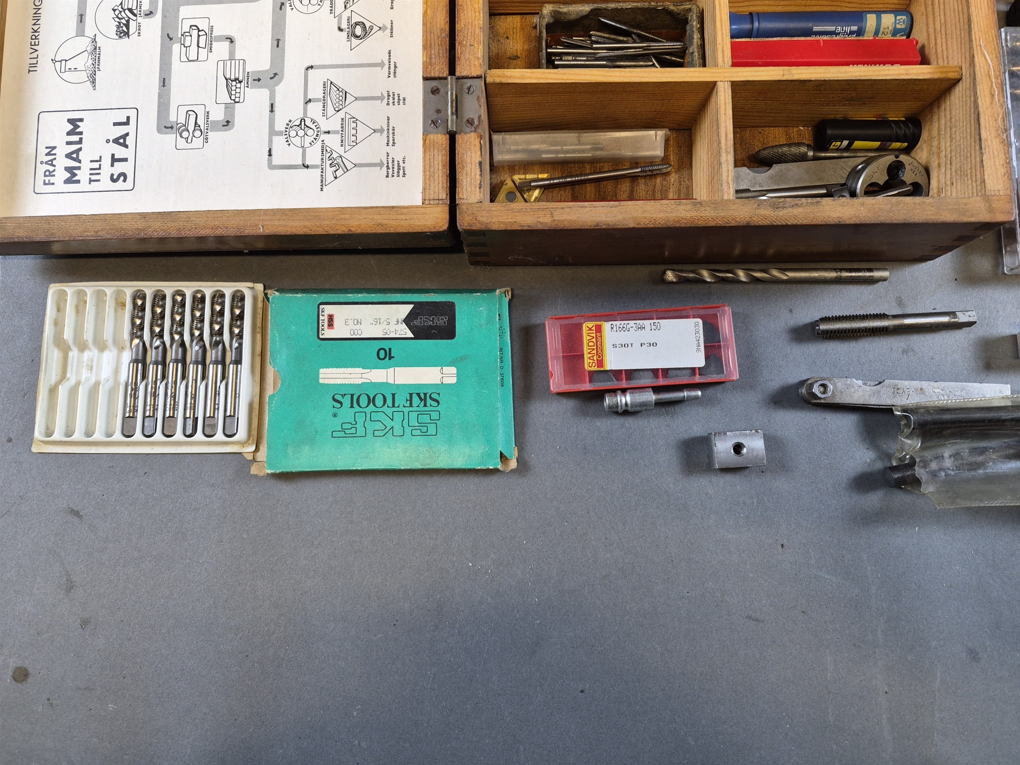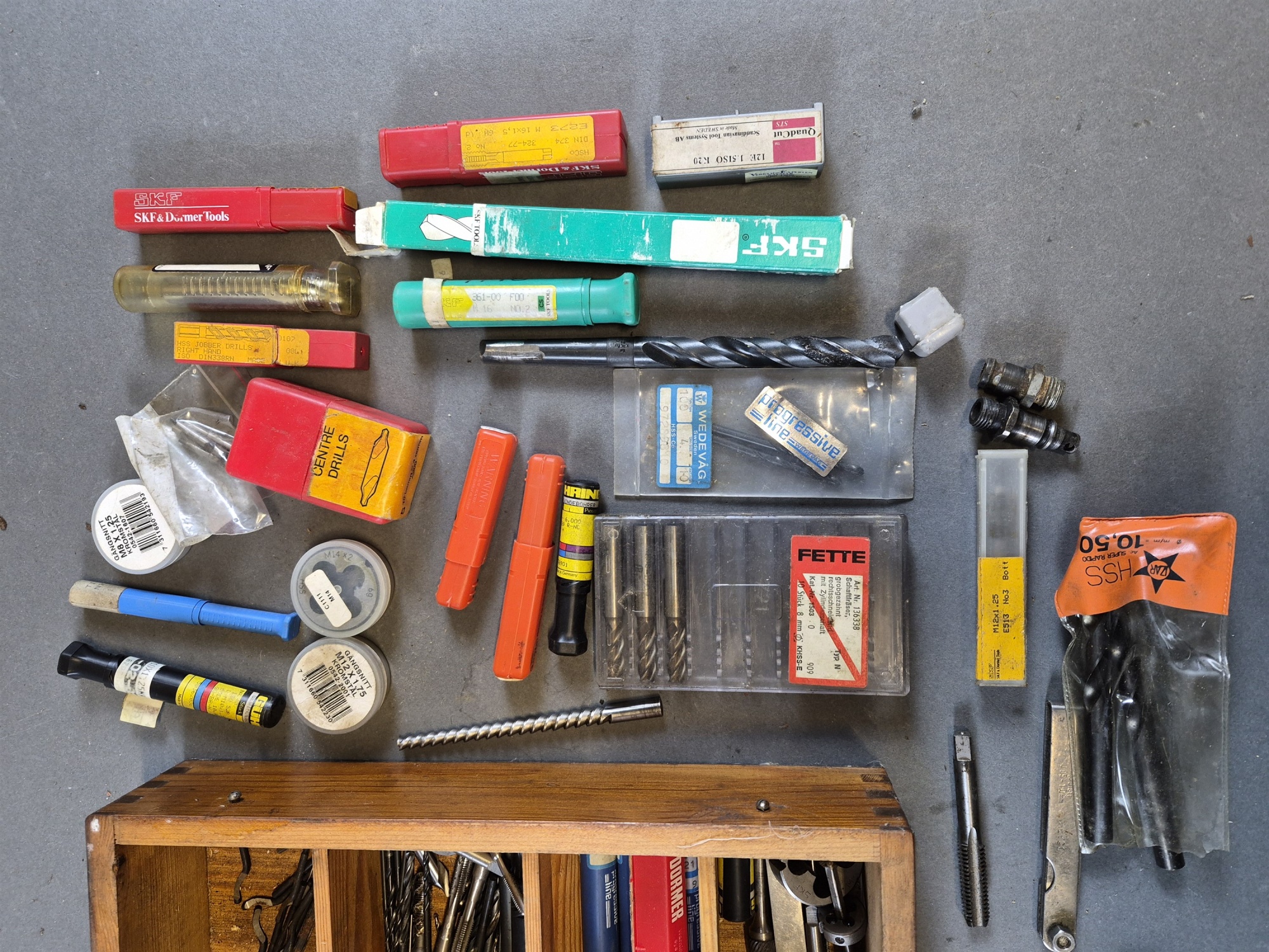 Bilder Parti bl.a borr, stål & gängtappar längd låda 32 cm
