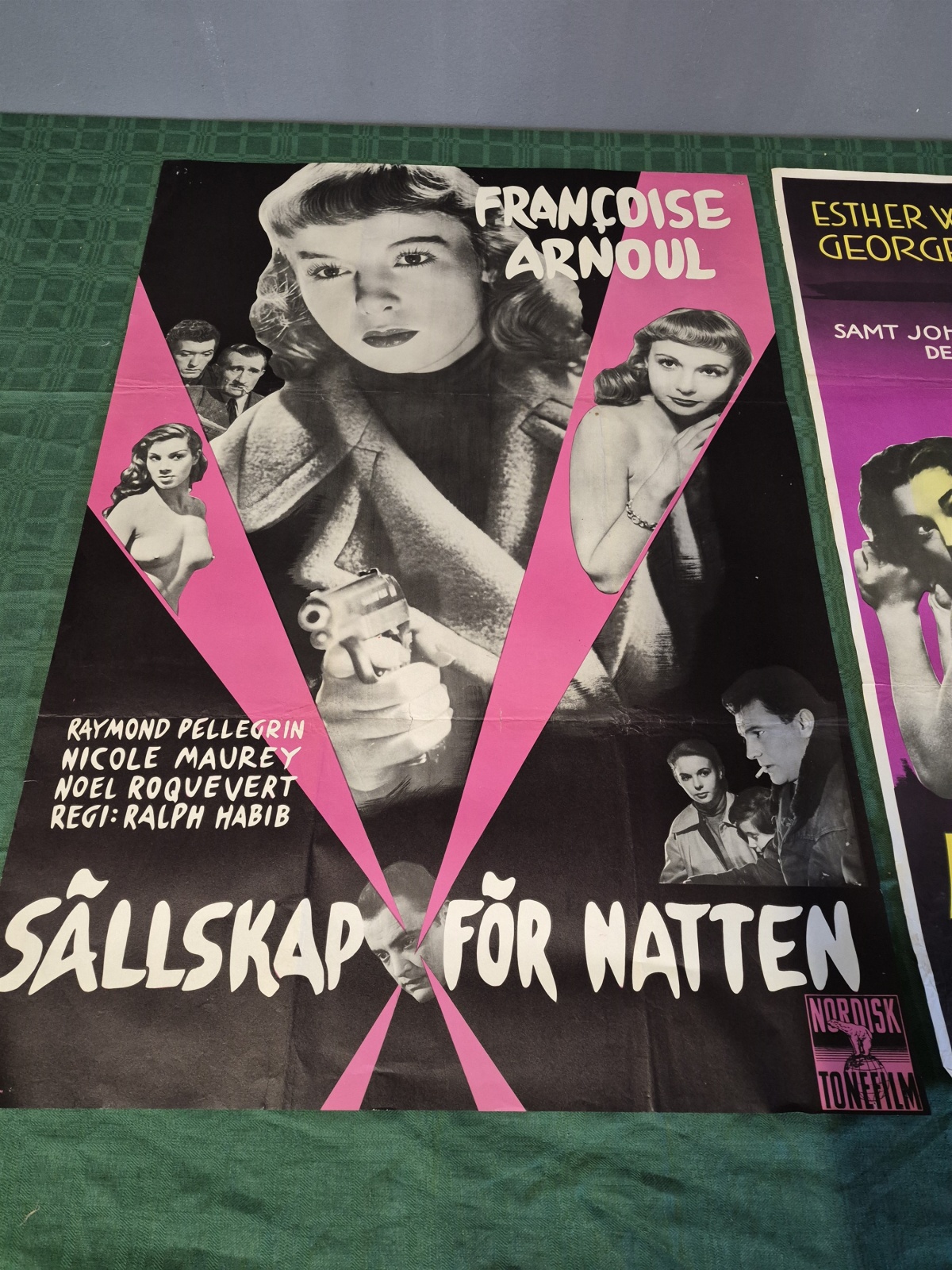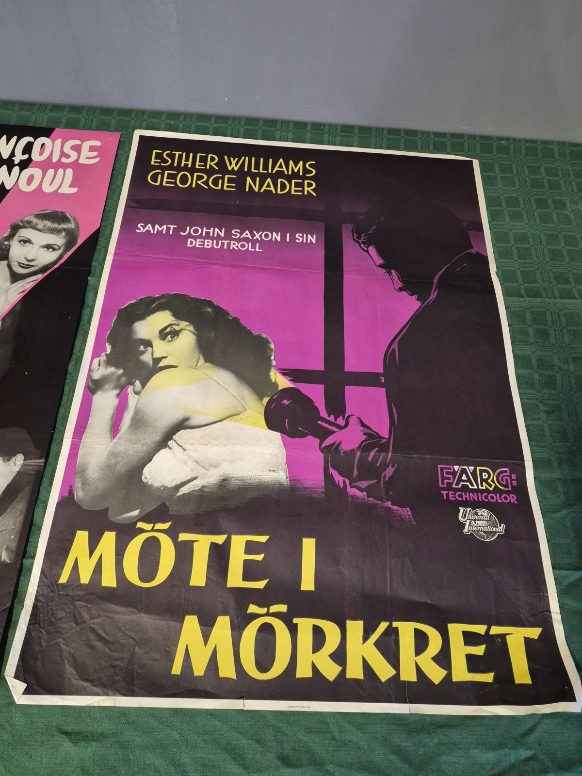 Bilder Filmposters 2 st; sällskap i natten och möte i mörkret, revor finns, mått 100x70 cm