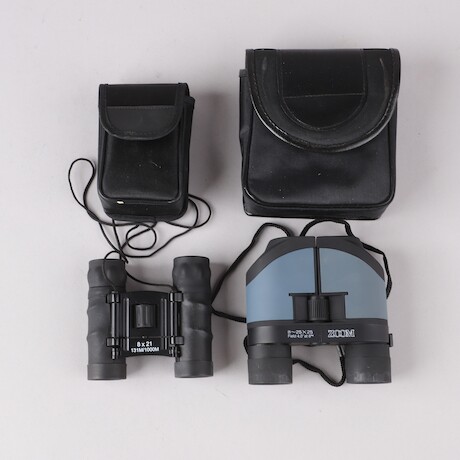 Plåtburkar, munspel, kikare mm