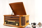 Spelare för skivor/LP, CD, kassetter, Bluetooth, MP3 och AUX.