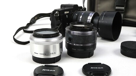 Kamera, Nikon V1, 3 objektiv, 2 batterier, laddare (Sladd saknas)