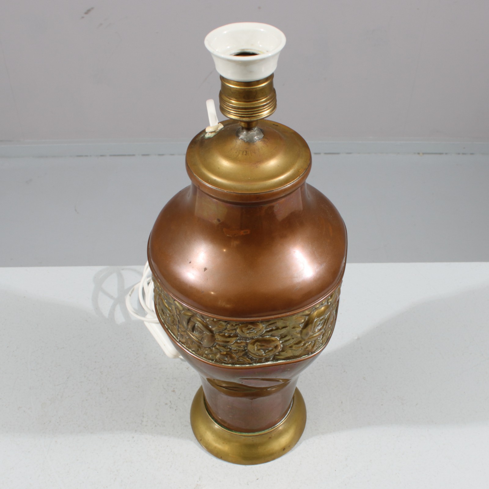 Mässing och koppar, porslins hatt vid lamp fäste. H:42cm (Vån3)