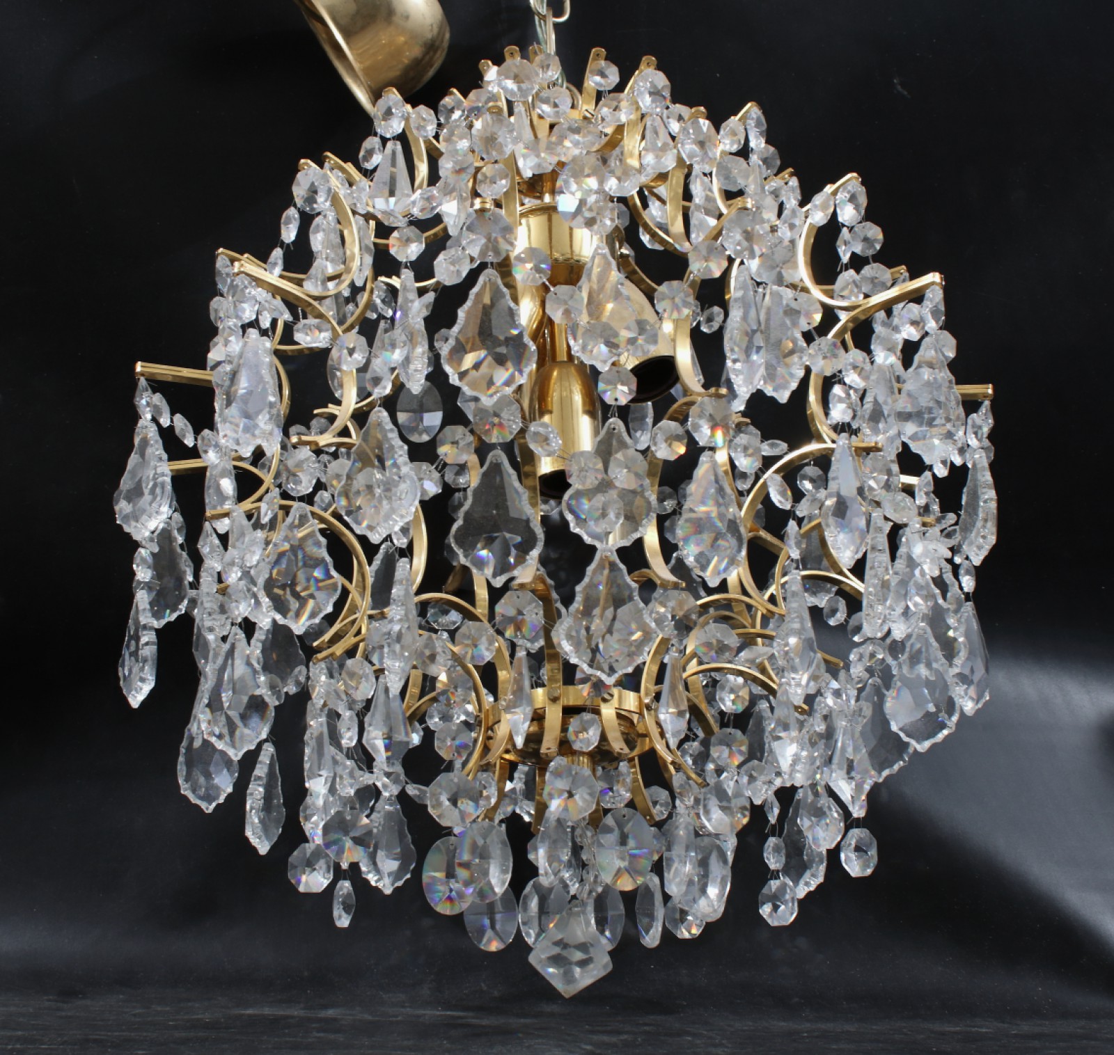 Stomme i mässing, prismor i glas7kristall, höjd utan kedja 40 cm, diameter 38 cm. (vån1)