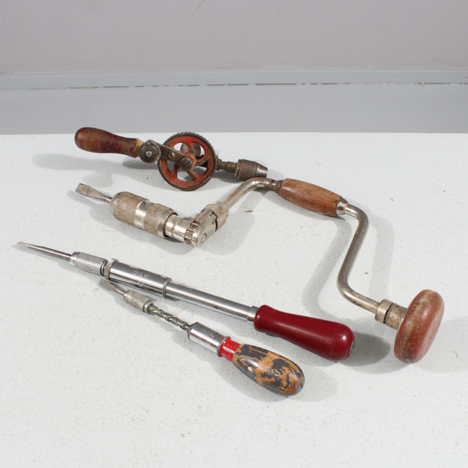 4 delar, 2st Stanley "Yankee" skruvmejslar, 1st borrsväng samt 1st äldre borr. (vån3)