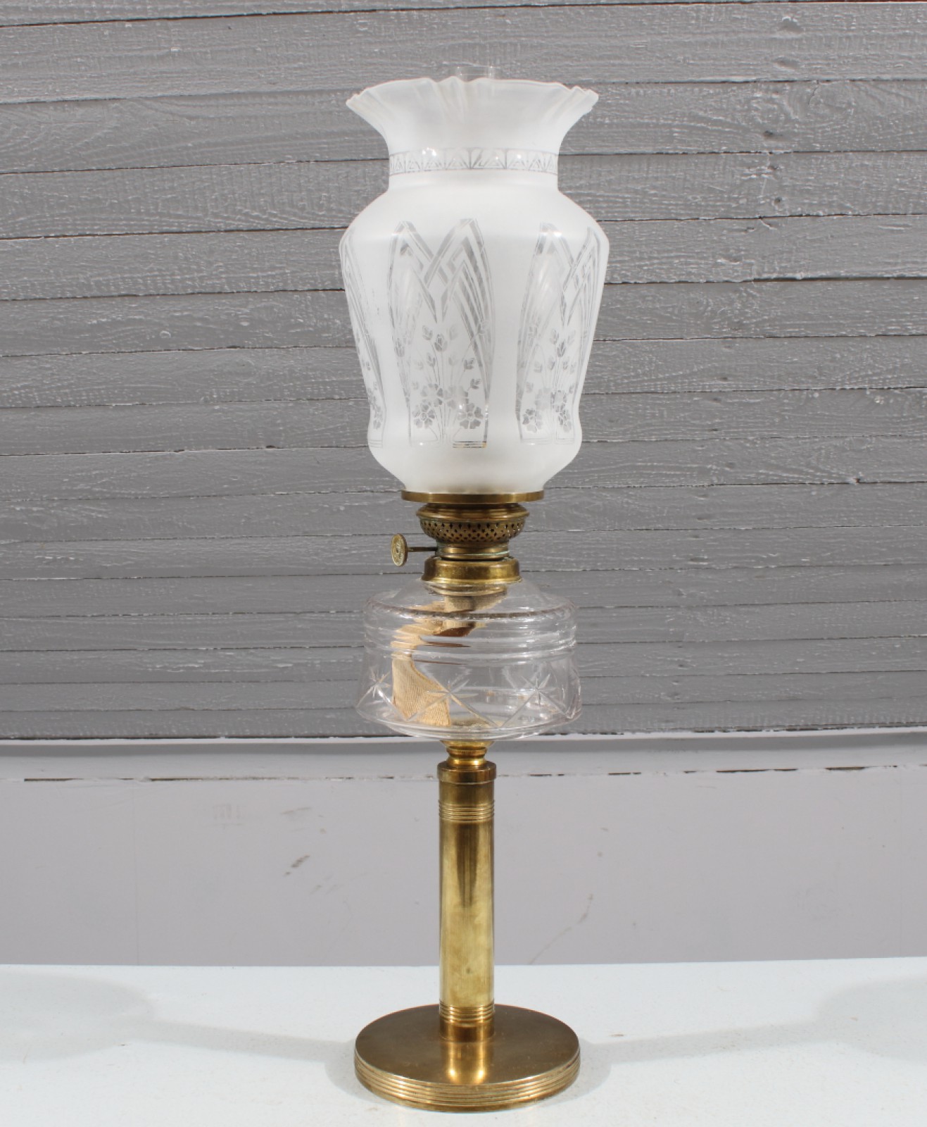 Mässing och glas, skärm med mindre nagg (se bild) Höjd.63cm (vån3)
