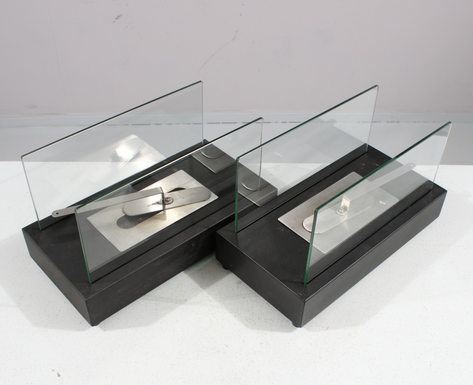 2 stycken (1 par), lackad plåt och glas, 2000-tal, H.20, L.35, B.18 cm. (vån3)
