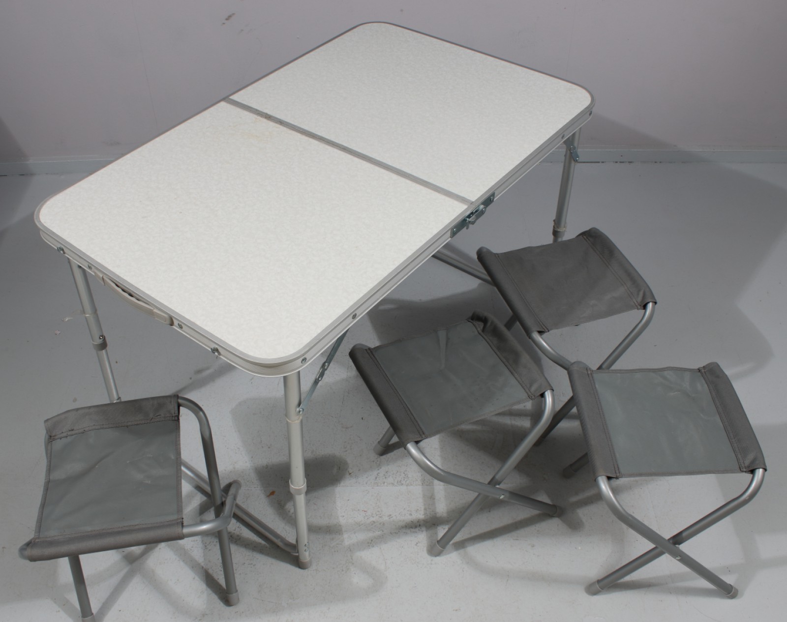 1st bord samt 4st pallar, hopfällbart, 2000-tal, bord H.59,5, L.98, B.61 cm, pall H.34 cm. (vån2)
