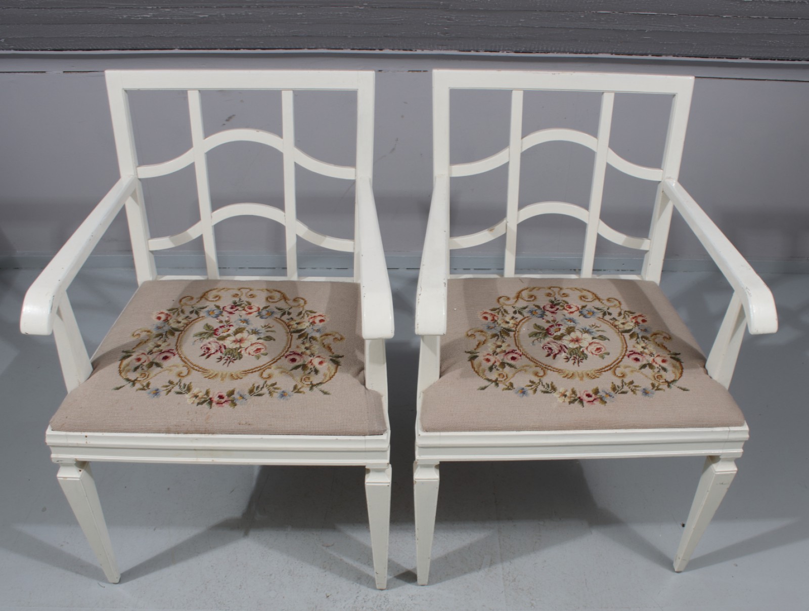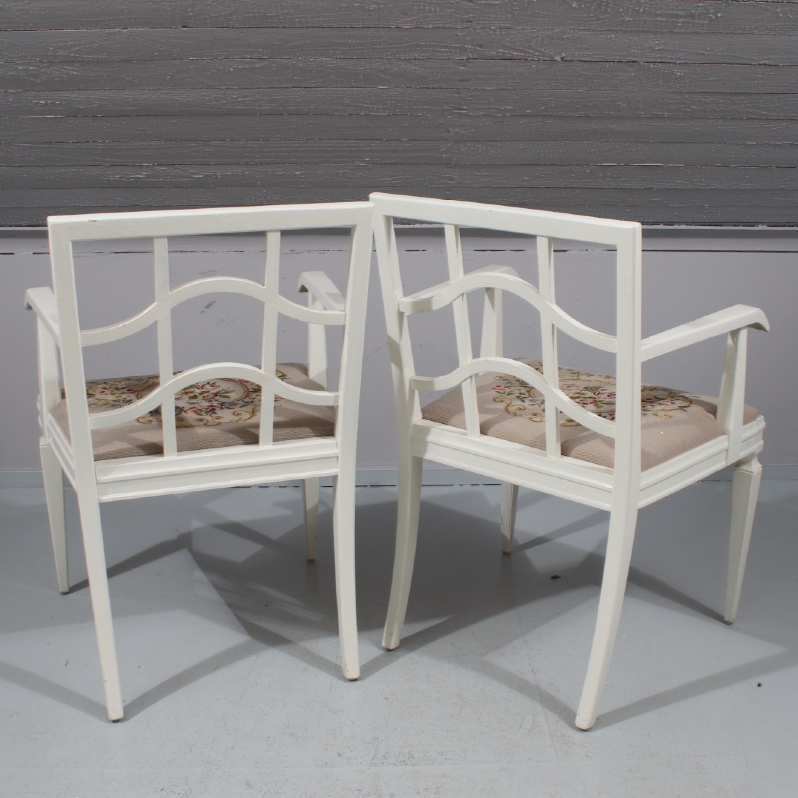 2 stycken (1 par), bemålat trä, 1900-talets första hälft, senare tyg, ställvis med färgslitage, Rh.85, B.57, Sh.48 cm. (vån3)