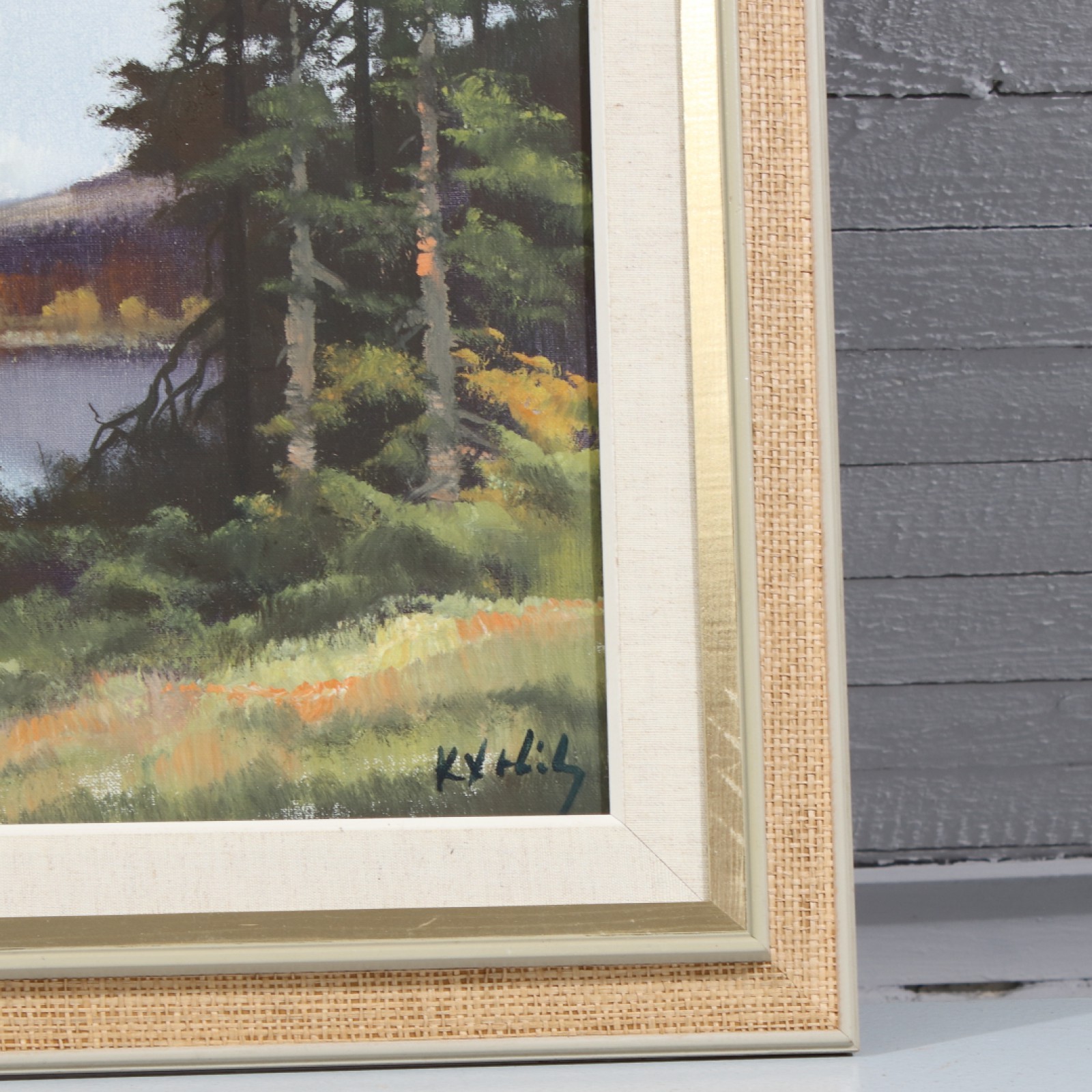 Olja på duk, "Landskapsscen", ram 51x91 cm, bild 33x73 cm. (vån1)