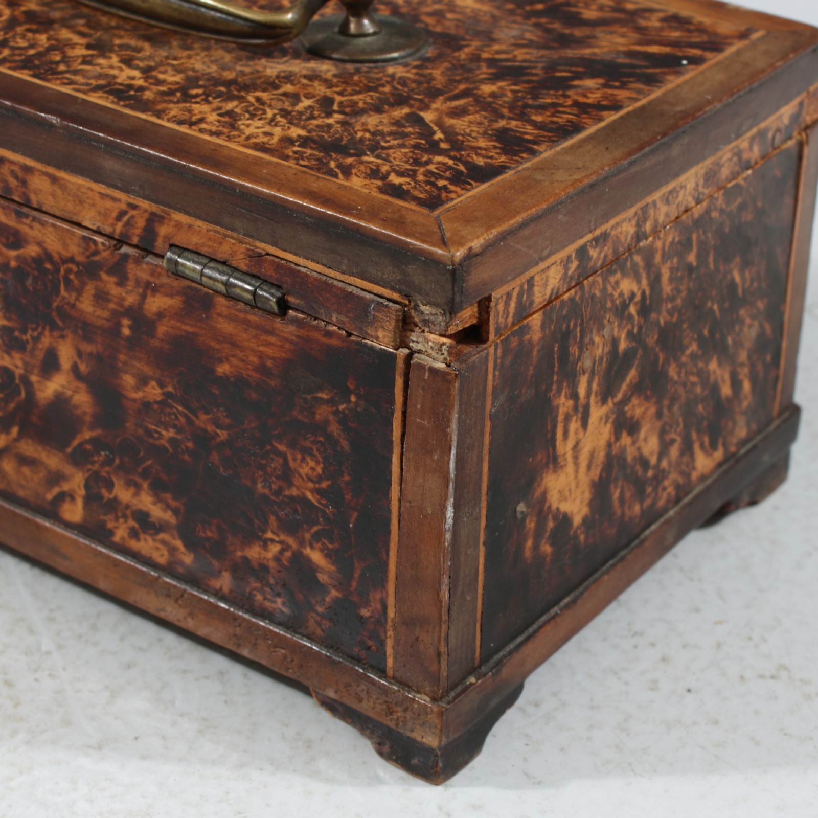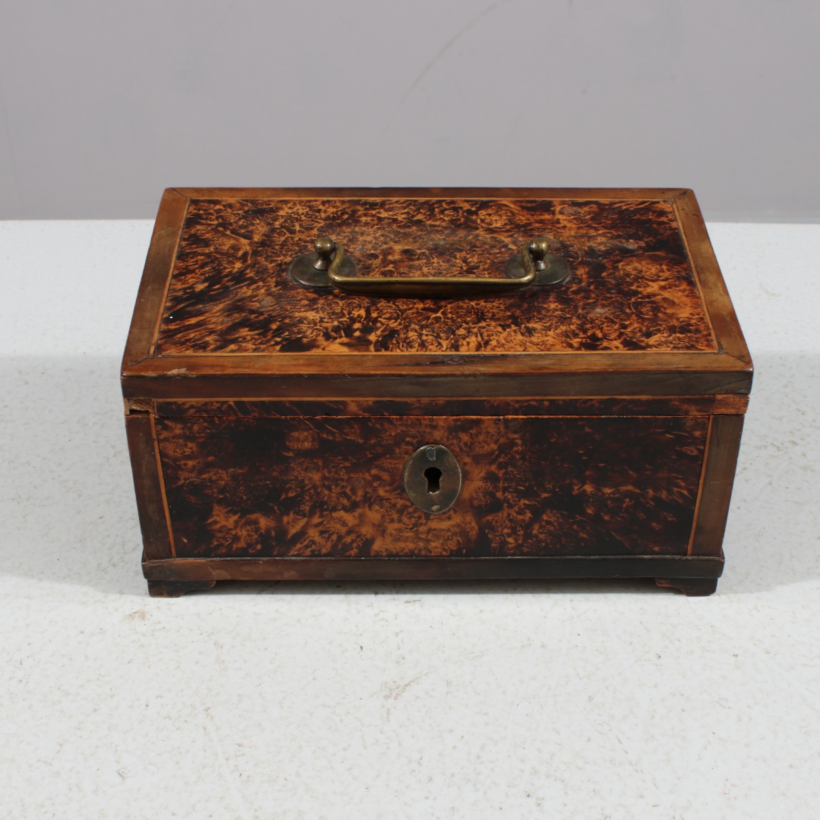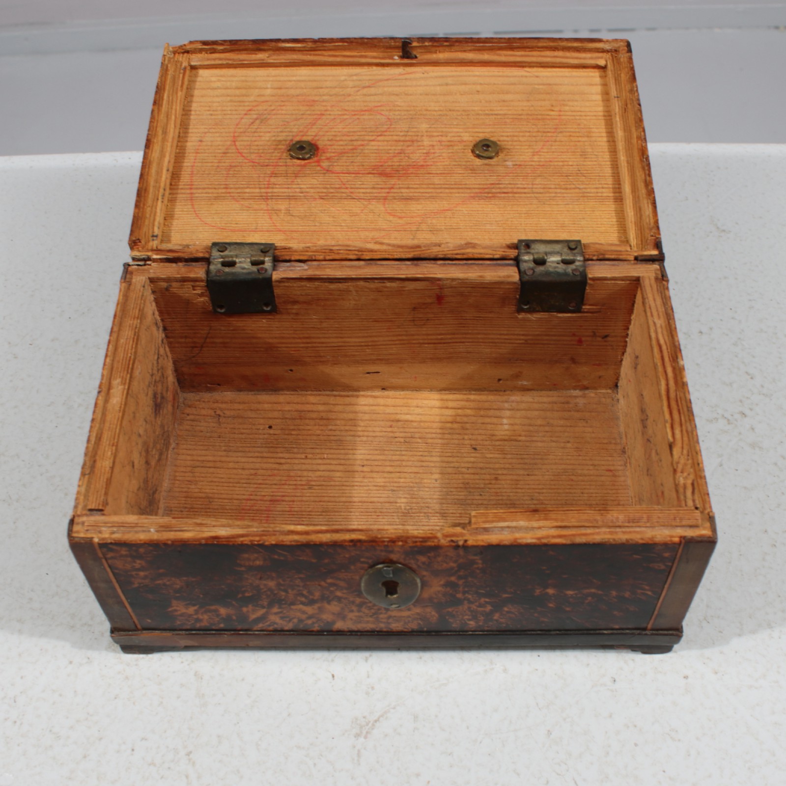 Fanerad med bl.a rotfaner, 18,1900-tal, lås saknas, Några hörn med fanerbortfall, 9x19x11,5 cm. (vån3)