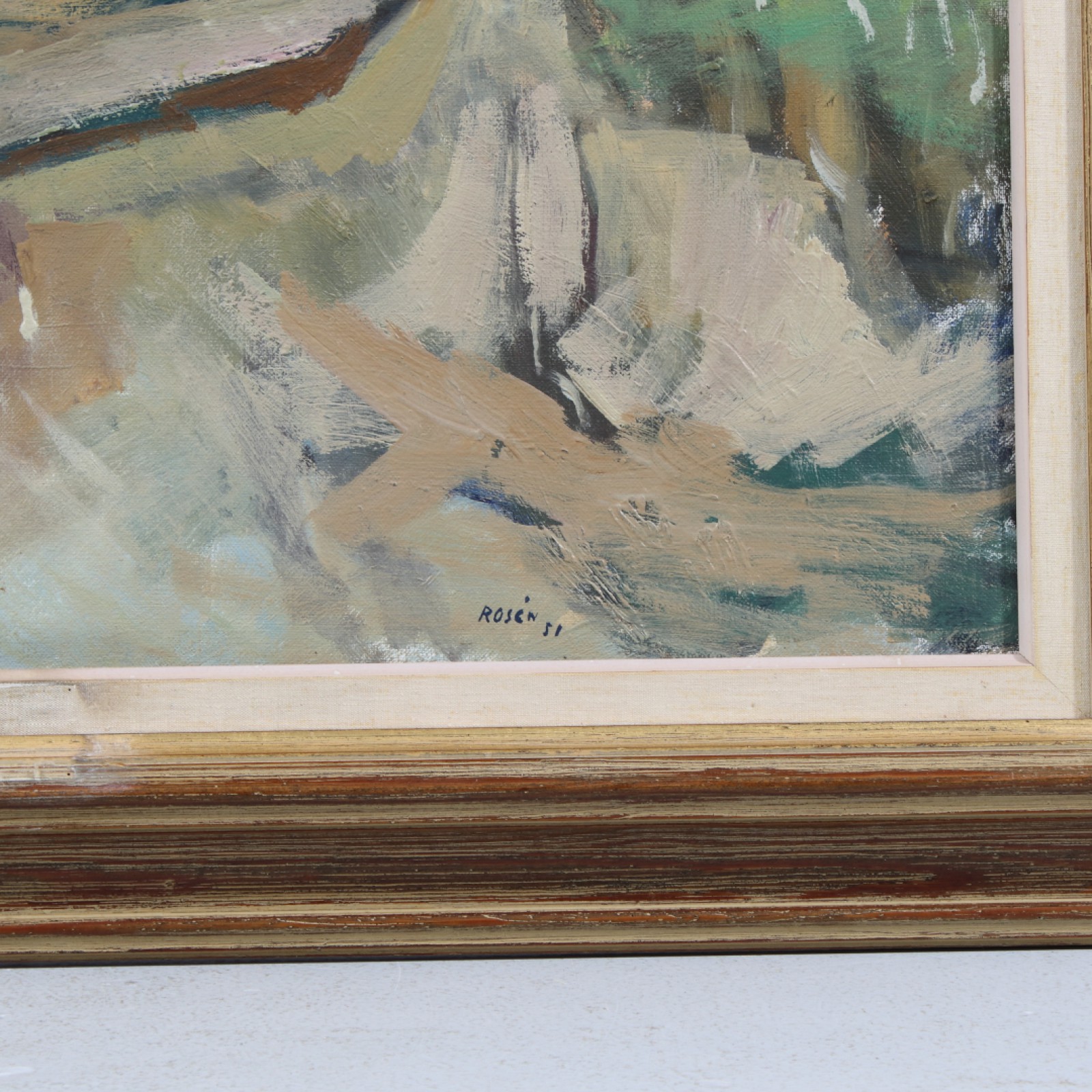 Olja på duk, "Naturscen med fjäll", signerad samt daterad -51, ram 76x90 cm, bild 57x71 cm. (vån1)