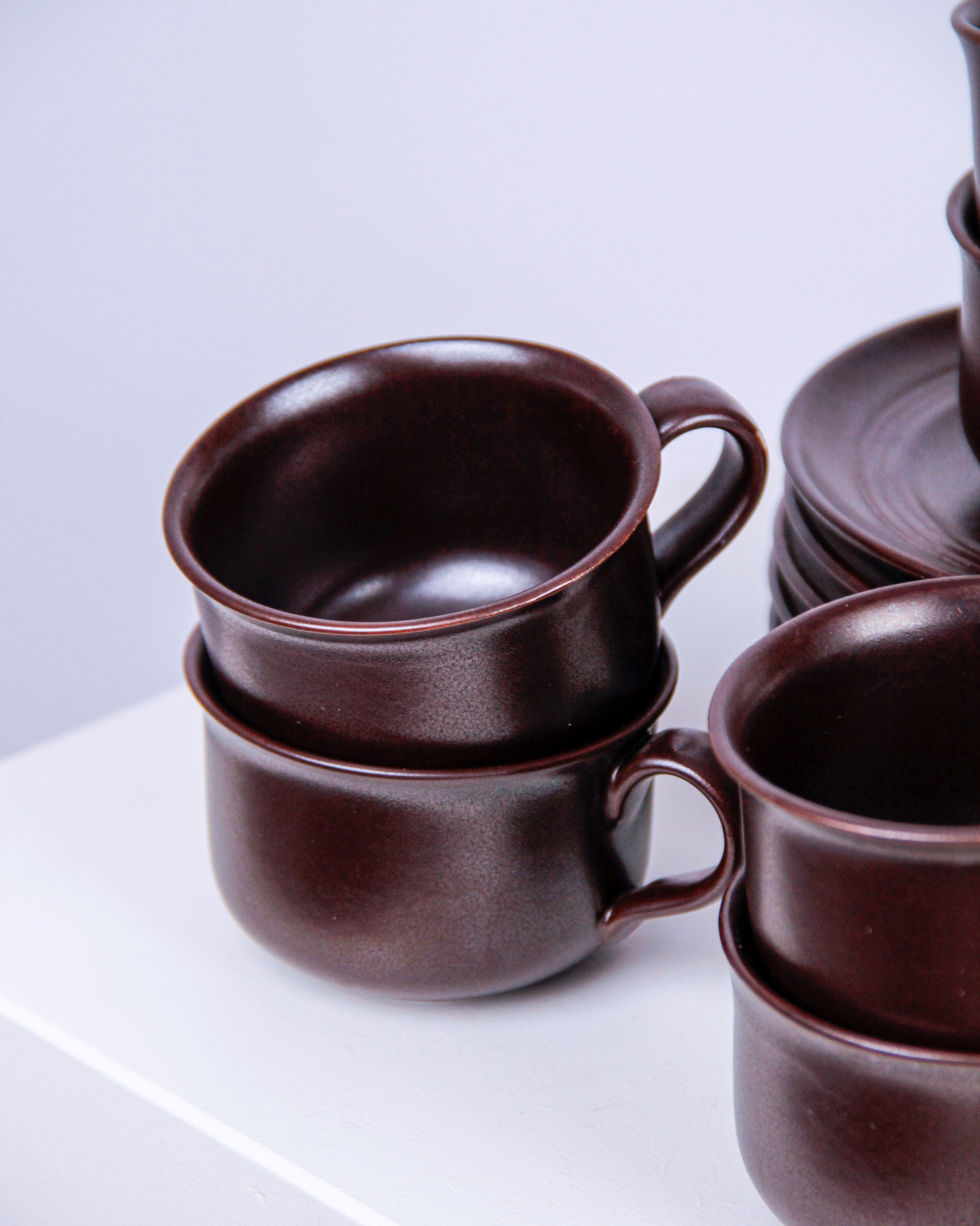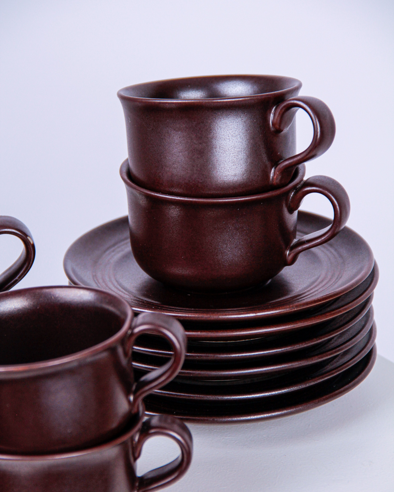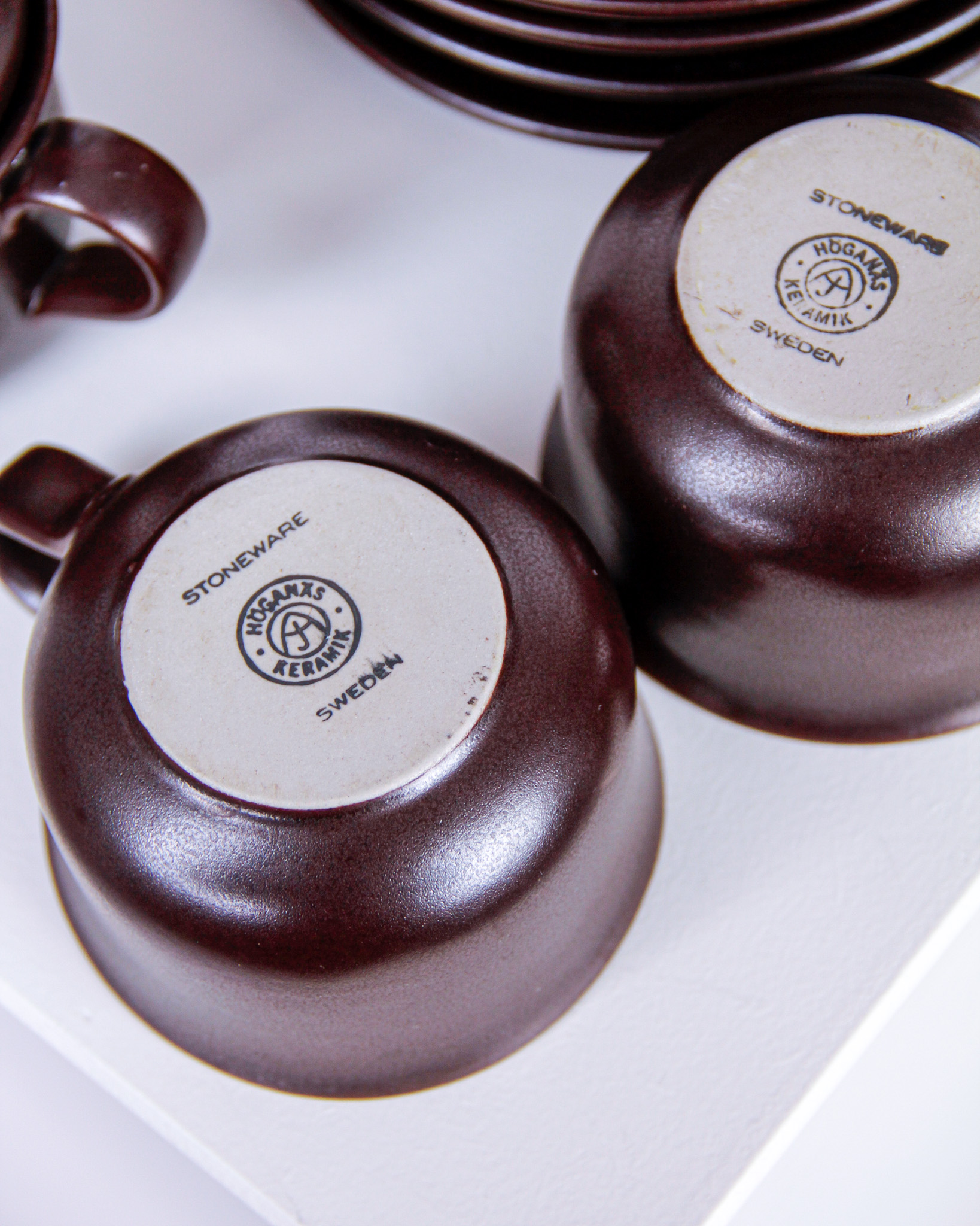 Koppar och fat, 6 st, glaserat stengods, Höganäs Keramik