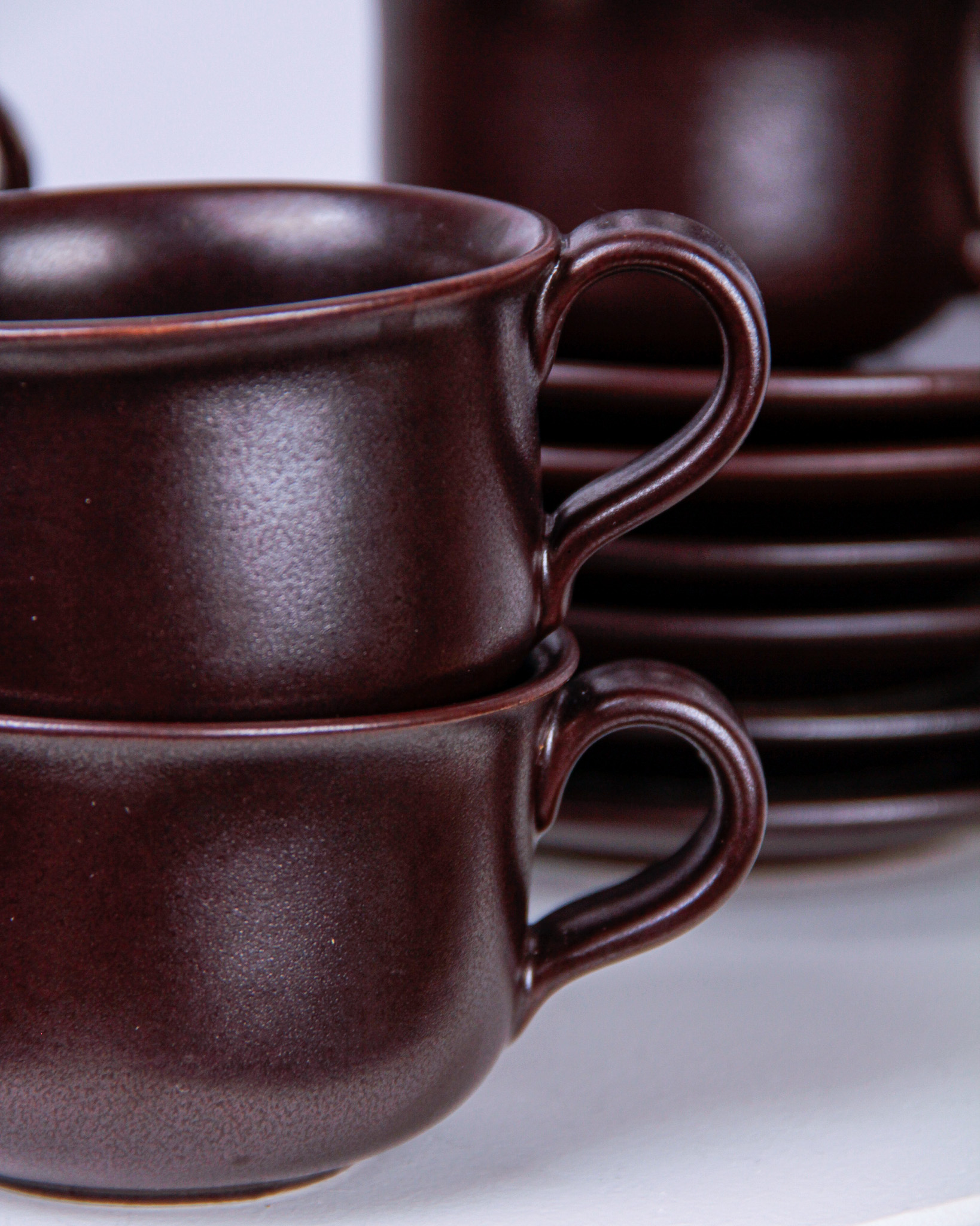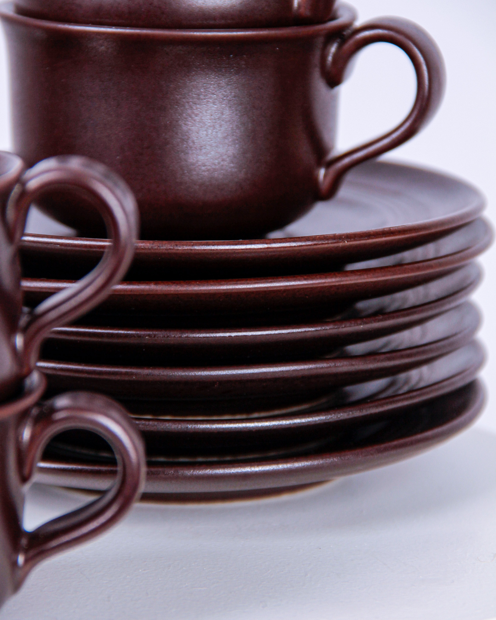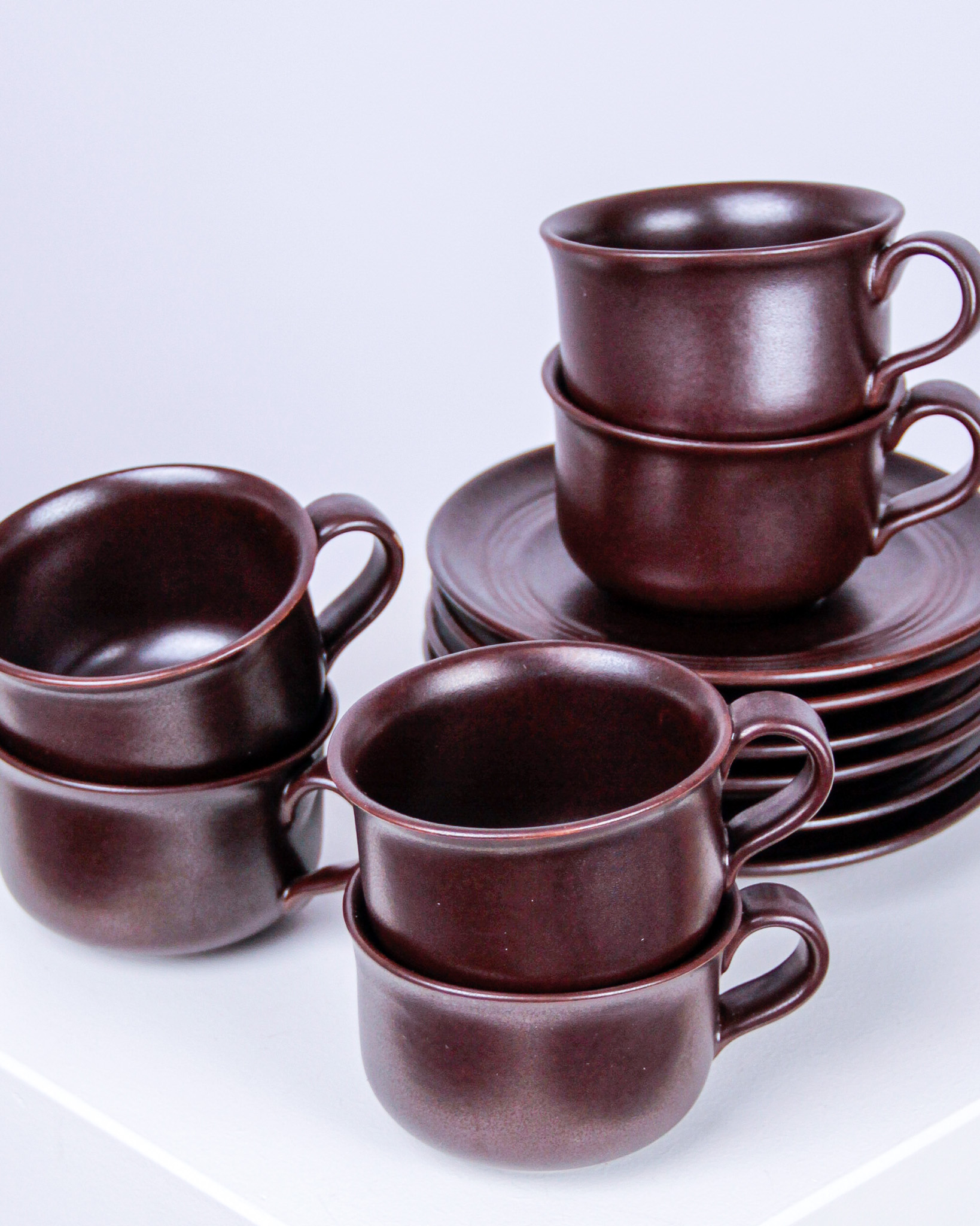 Koppar och fat, 6 st, glaserat stengods, Höganäs Keramik