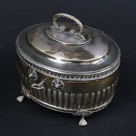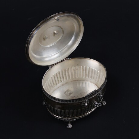 Auktioner Guld, Silver & Smycken Sockerskrin, silver, GAB, Stockholm, 1920, 13,5 X 11 X 12 cm, vikt 464 gram