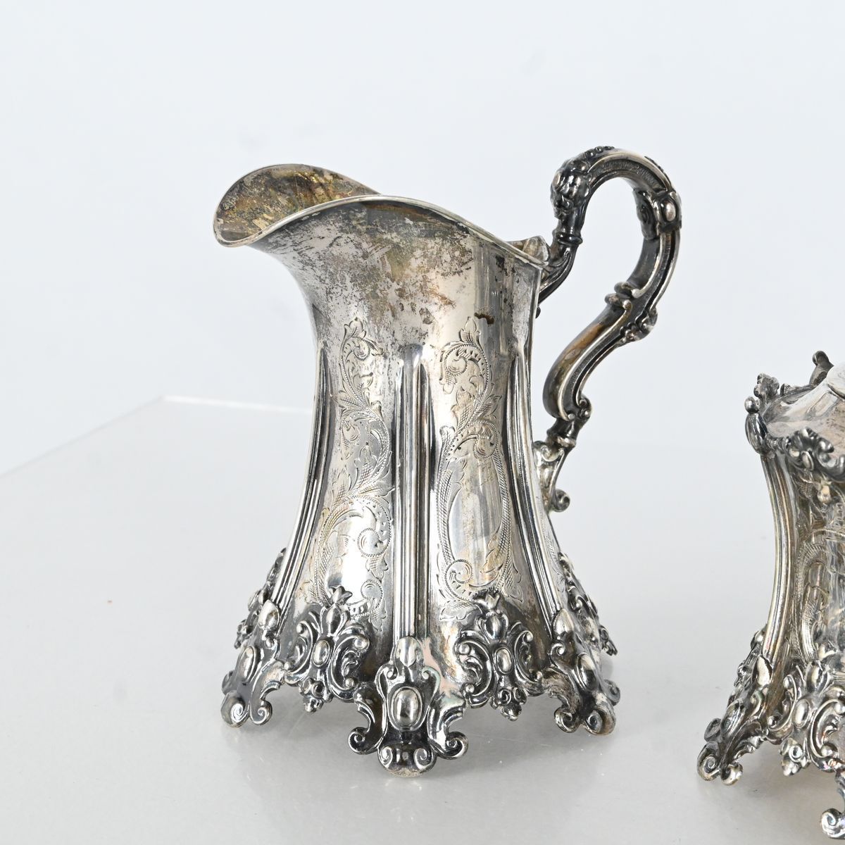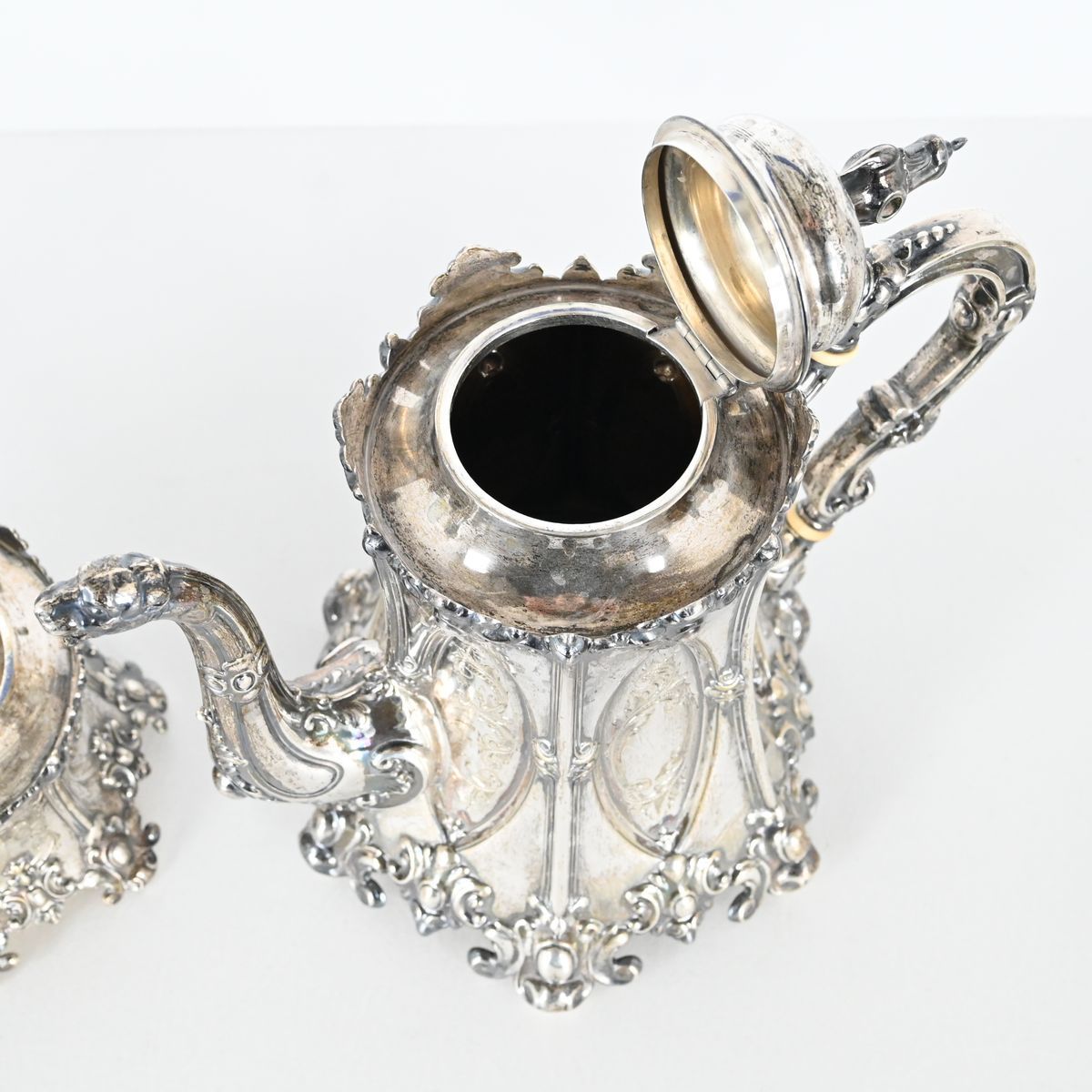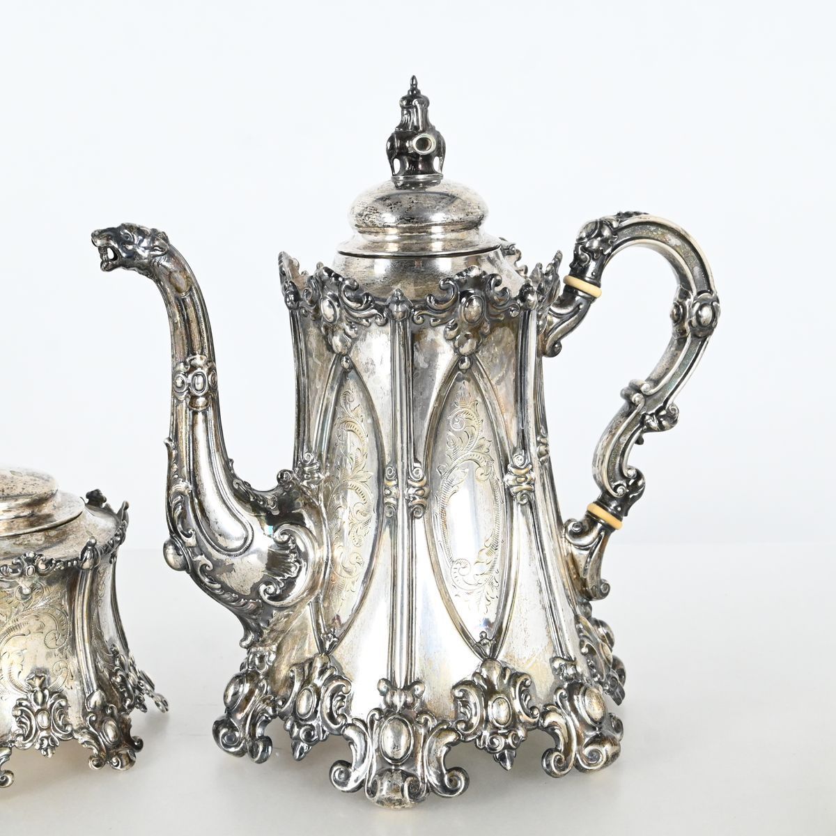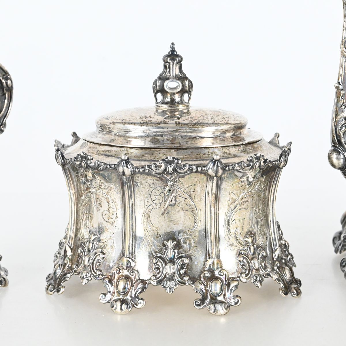 Auktioner Guld, Silver & Smycken CG Hallberg, Kaffeservis 3 delar, Stockholm 1919-1923, Nygotisk stil