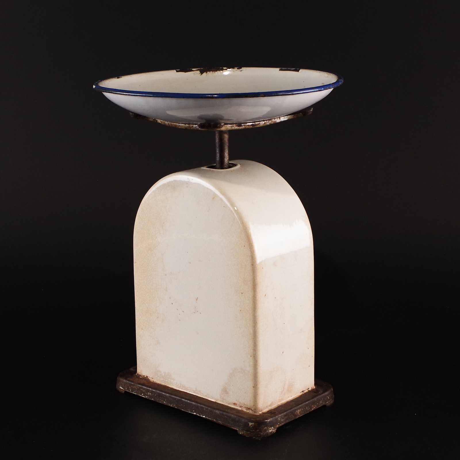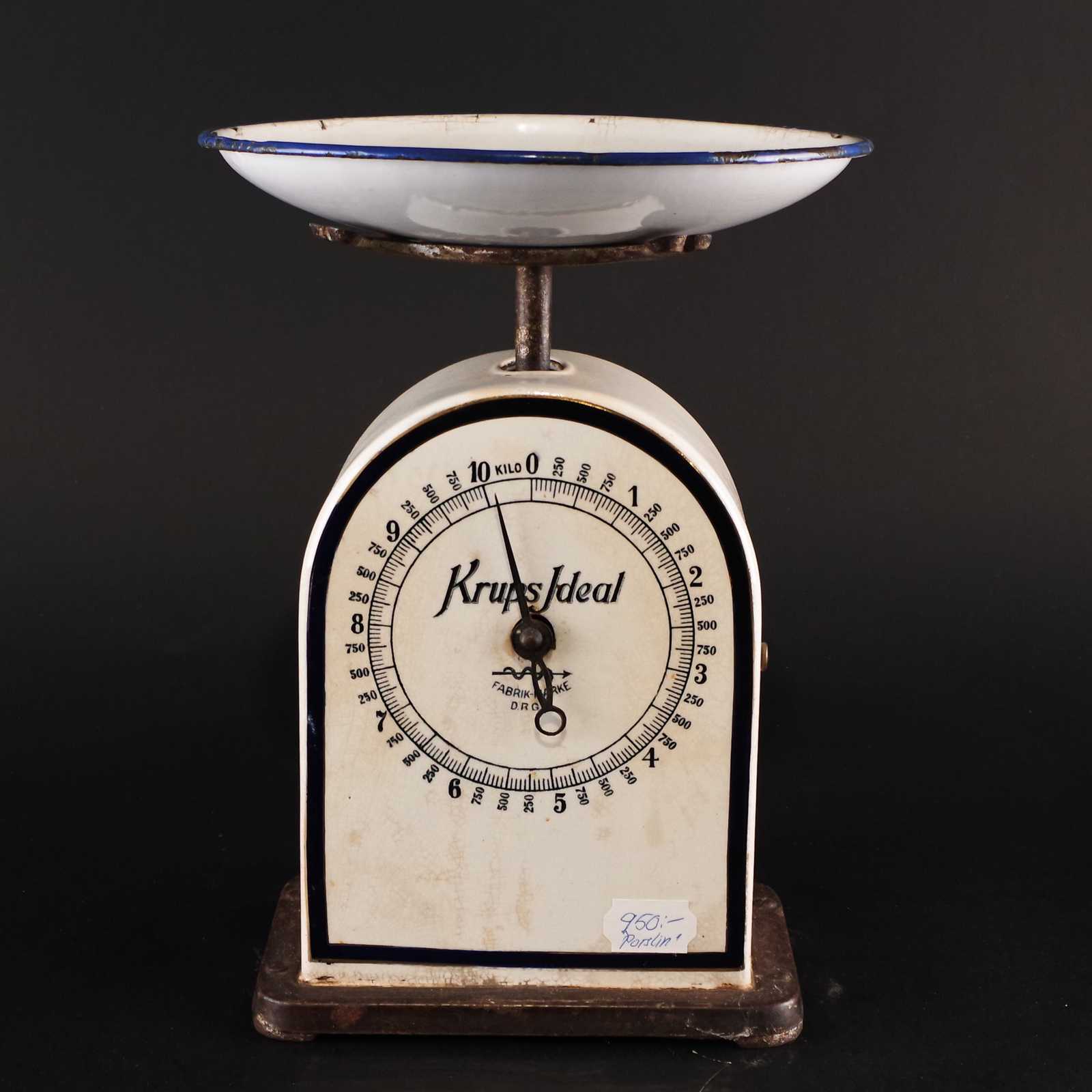 Bilder HUSHÅLLSVÅG äldre, porslin, emaljerad. Krups Ideal. H:30cm D:22cm. (bruksslitage)