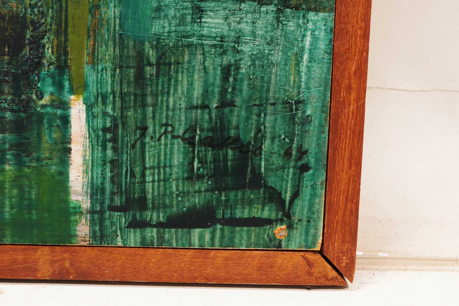 TAVLA, J.P Kallio, akryl på pannå, signerad. 126x53cm rammått