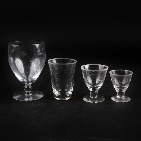 Glasservisdelar, slipad dekor