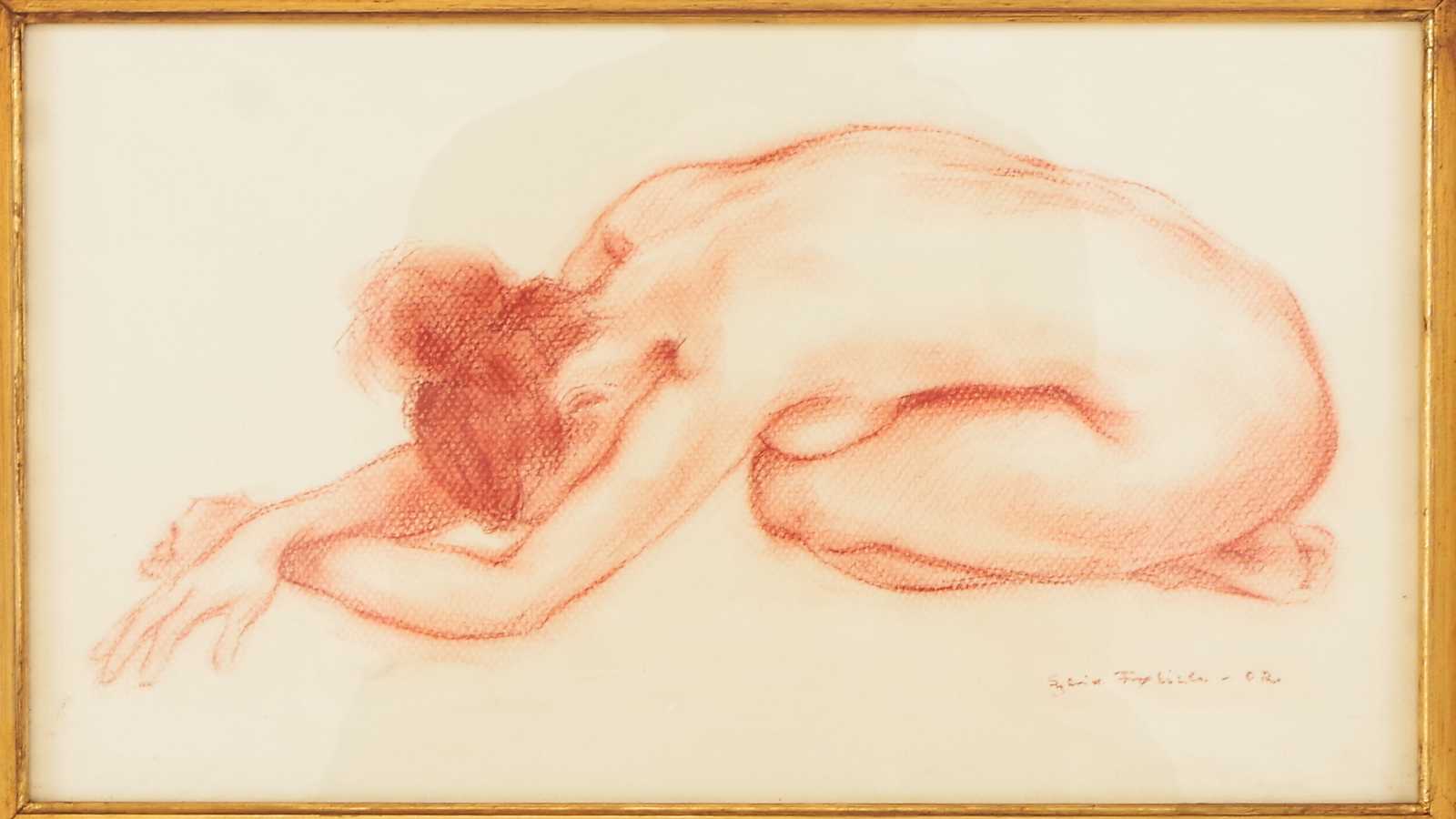 TAVLA Sylvia Frølich, signerad, krita på papper. 57x39cm rammått