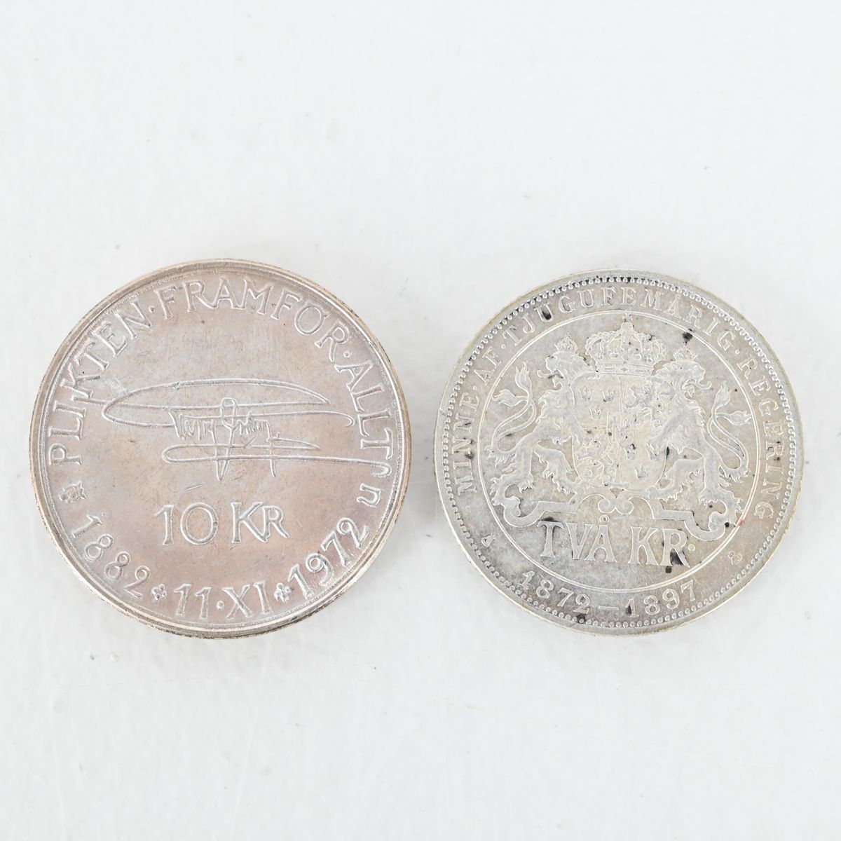 2 Jubileumsmynt 2 kronor 1897, 10 kronor 1972, Sverige, Silver