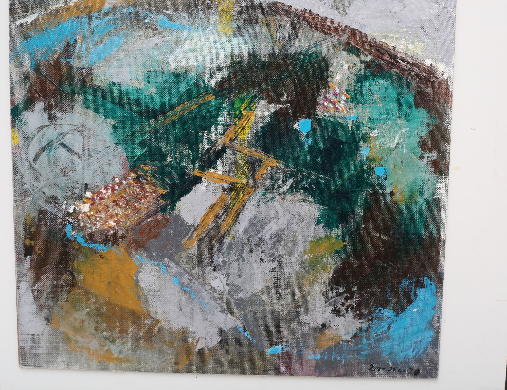 oljemålning på pannå, signerad -70, 50x60, rammått 62x72, oljemålning på pannå "I kanten på vår jord", sigerad -70, 35x30, rammått 46x42 (2)