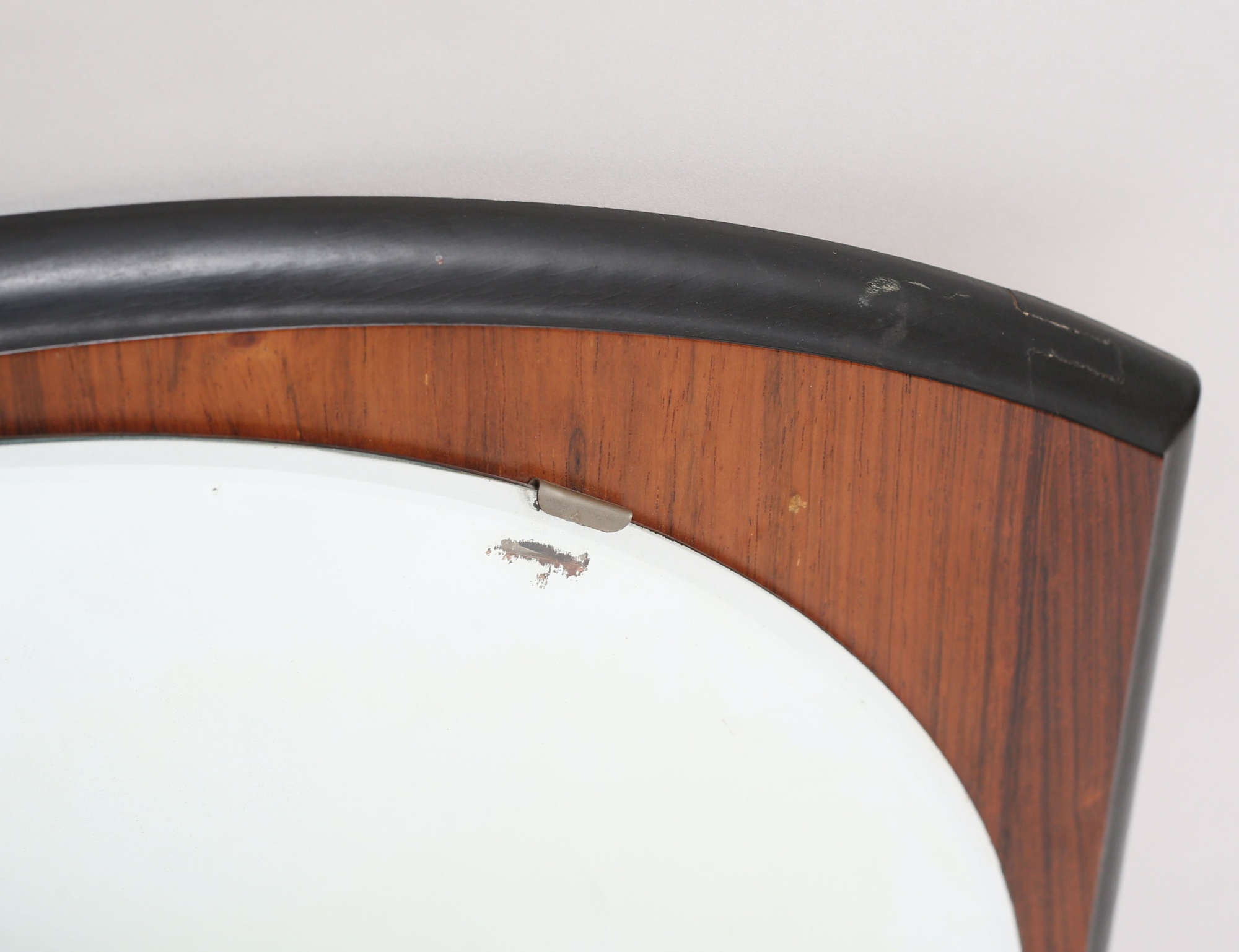 etikettmärkt G&T för Svenska Möbelfabrikerna, mahogny med svärtad kantdekor, fasettslipat glas, 102x54 (smärre fläckar i glaset)