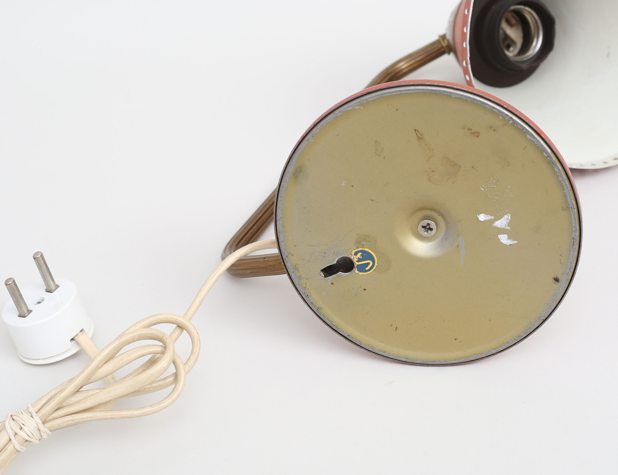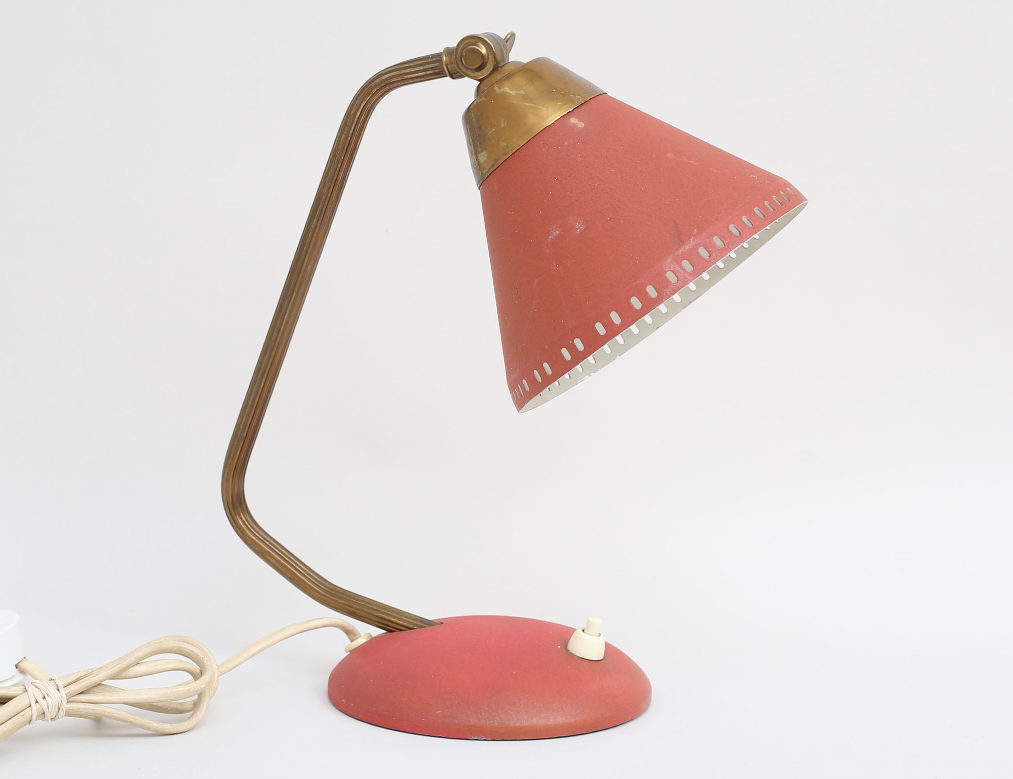 EWÅ Värnamo, rödlackerad metall och mässing, höjd 25 (bruksslitage)
