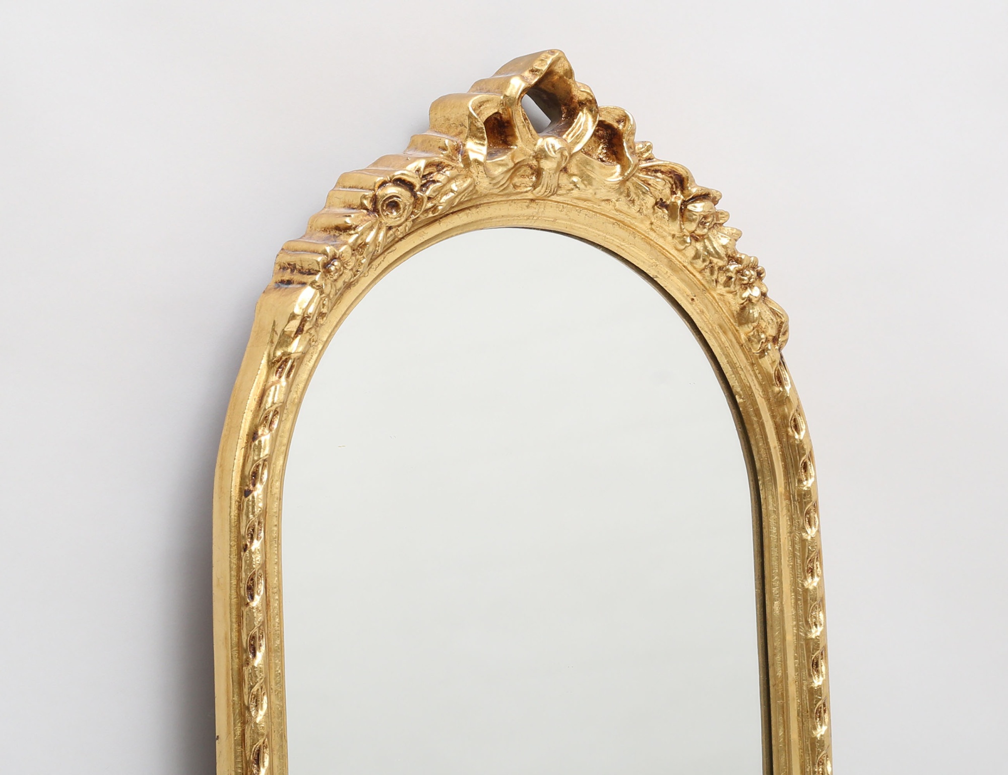 förgylld reliefdekor, genombrutet krön med rosett, 95x39