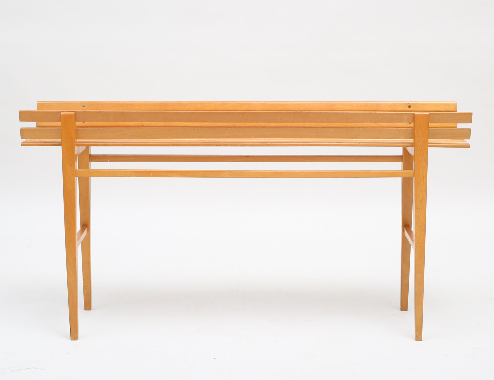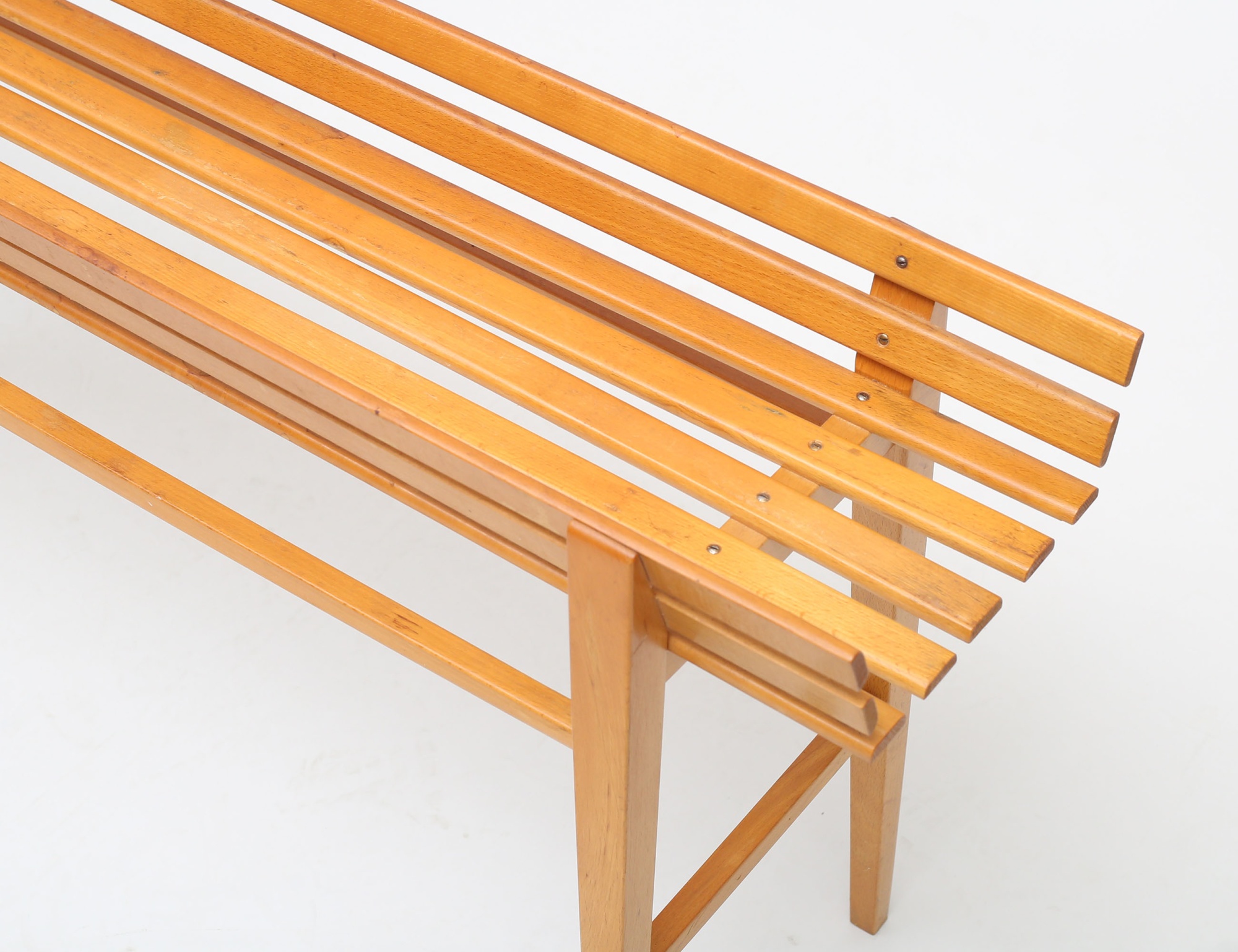 NK-BO 1900-talets mitt, ljus alm, längsgående ribbor på benställning, längd 110x25 (smärre fläckar)