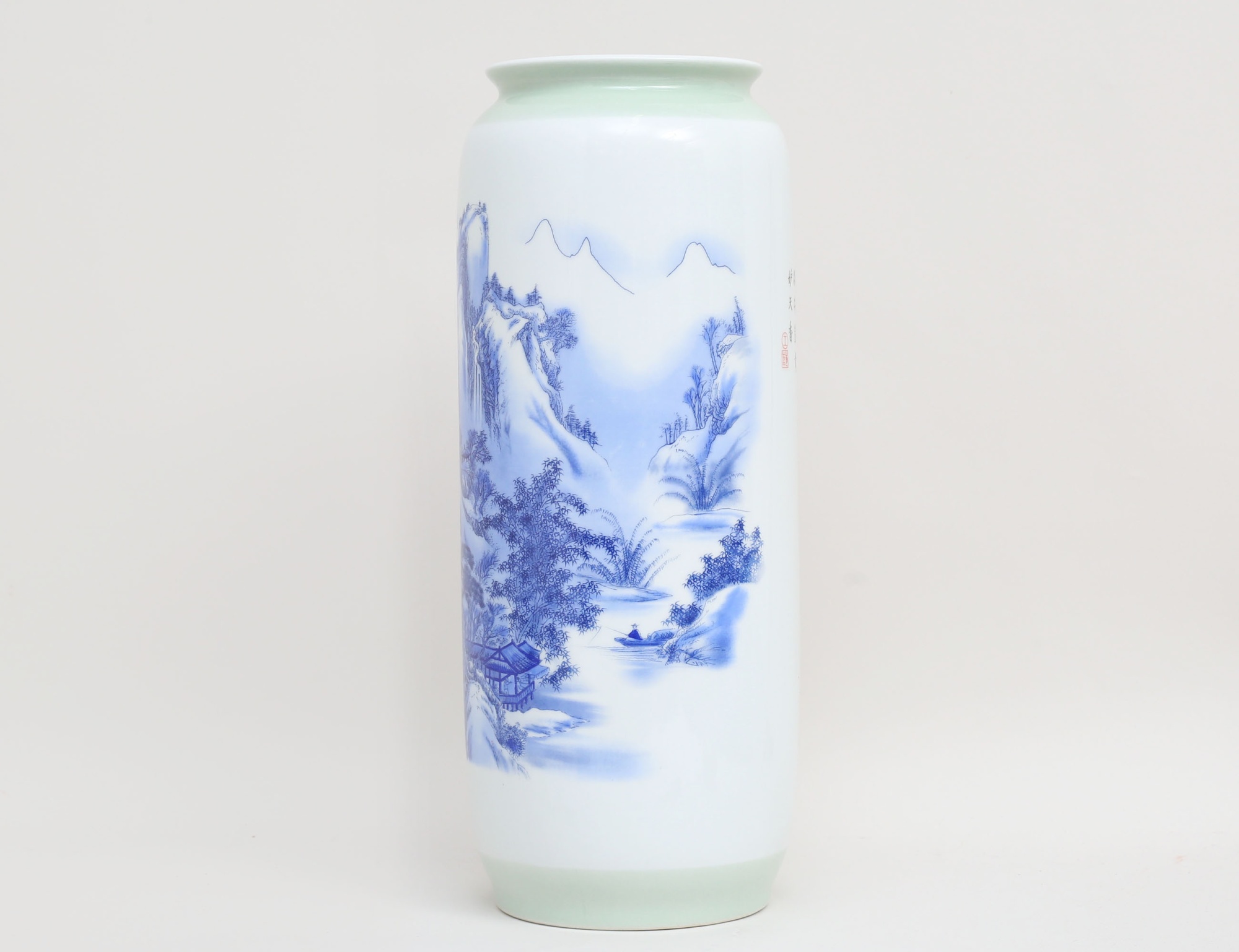 blåvit underglasyrdekor, skrivtecken, fotring och kant med celadon samt förgylld kantdekor, höjd 43
