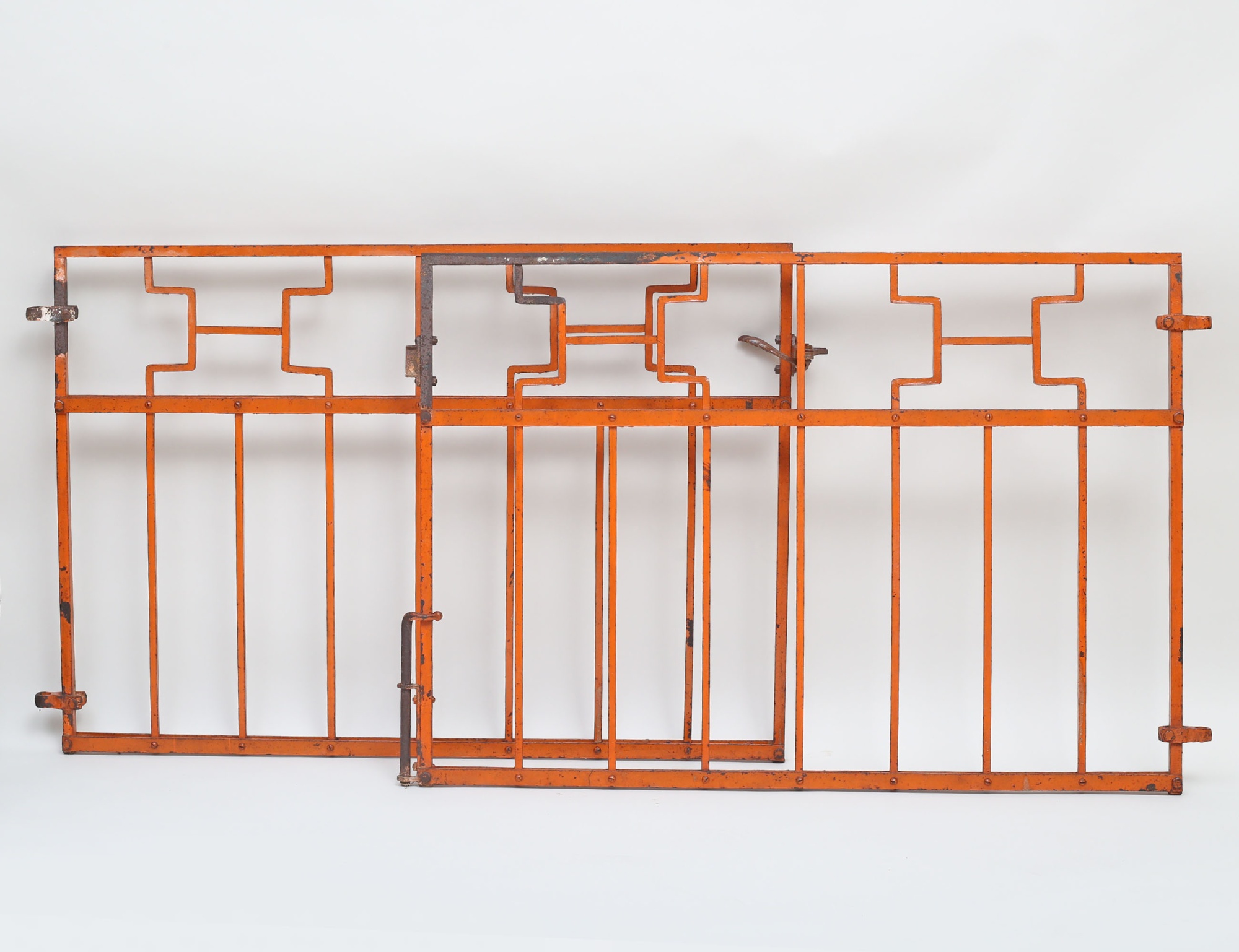 1920/30-tal, bemålat järnsmide lås, märkt JP Nr 7, höjd 80, bredd 113x2 (färgslitage)