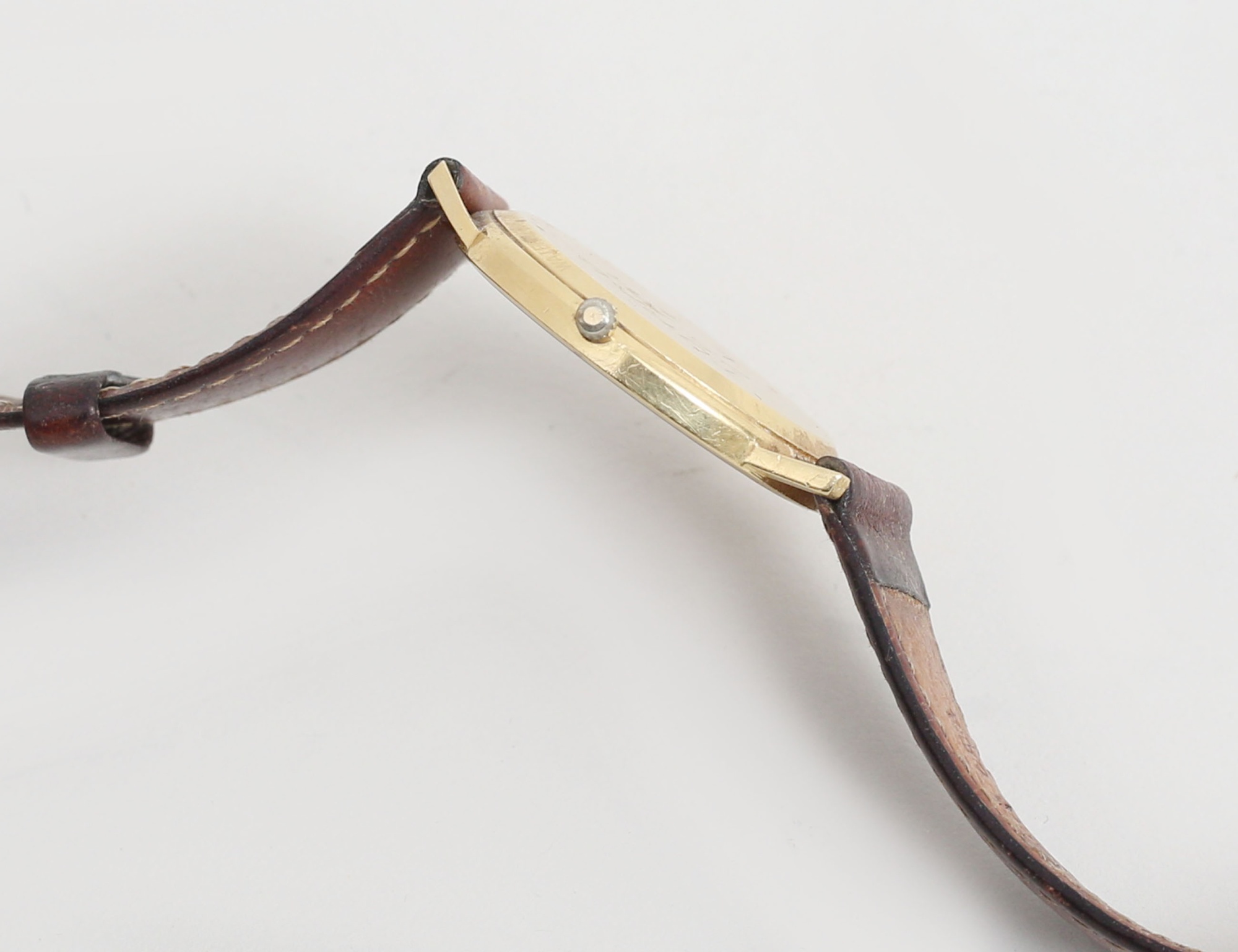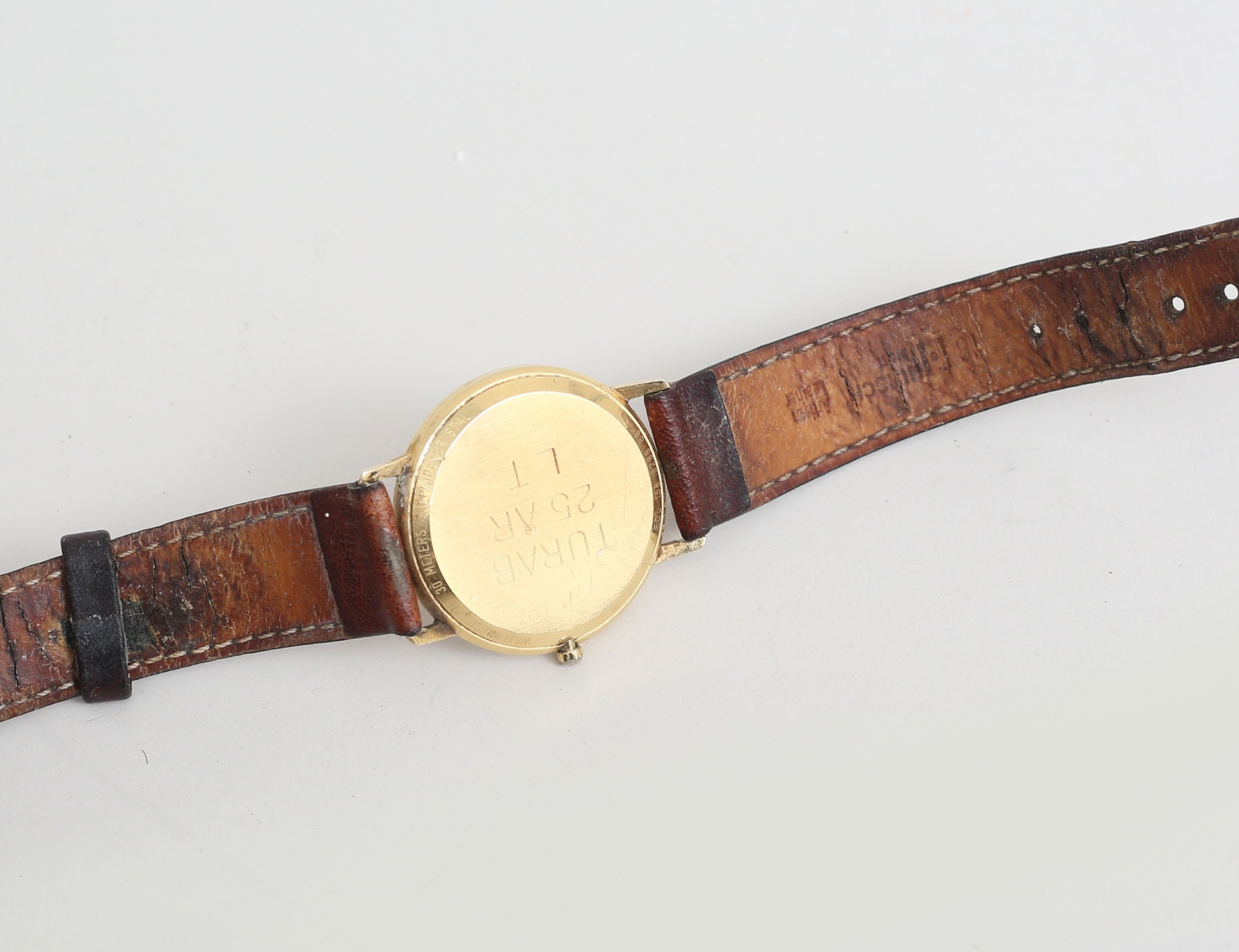 diameter 34mm., quartz, guldfärgad urtavla med stavindex och datum, ej funktionstestad (inskription, bruksslitage)