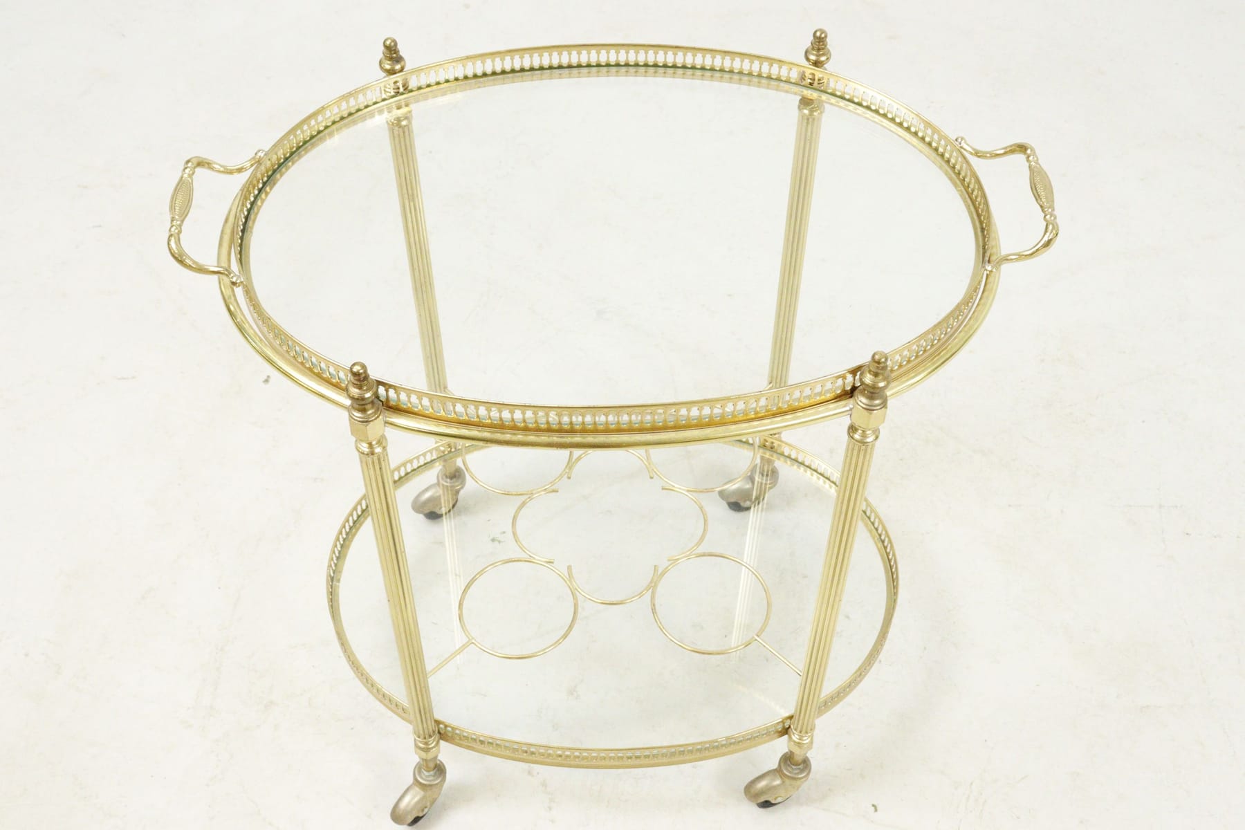 Serveringsvagn, mässing och glas, med bricka