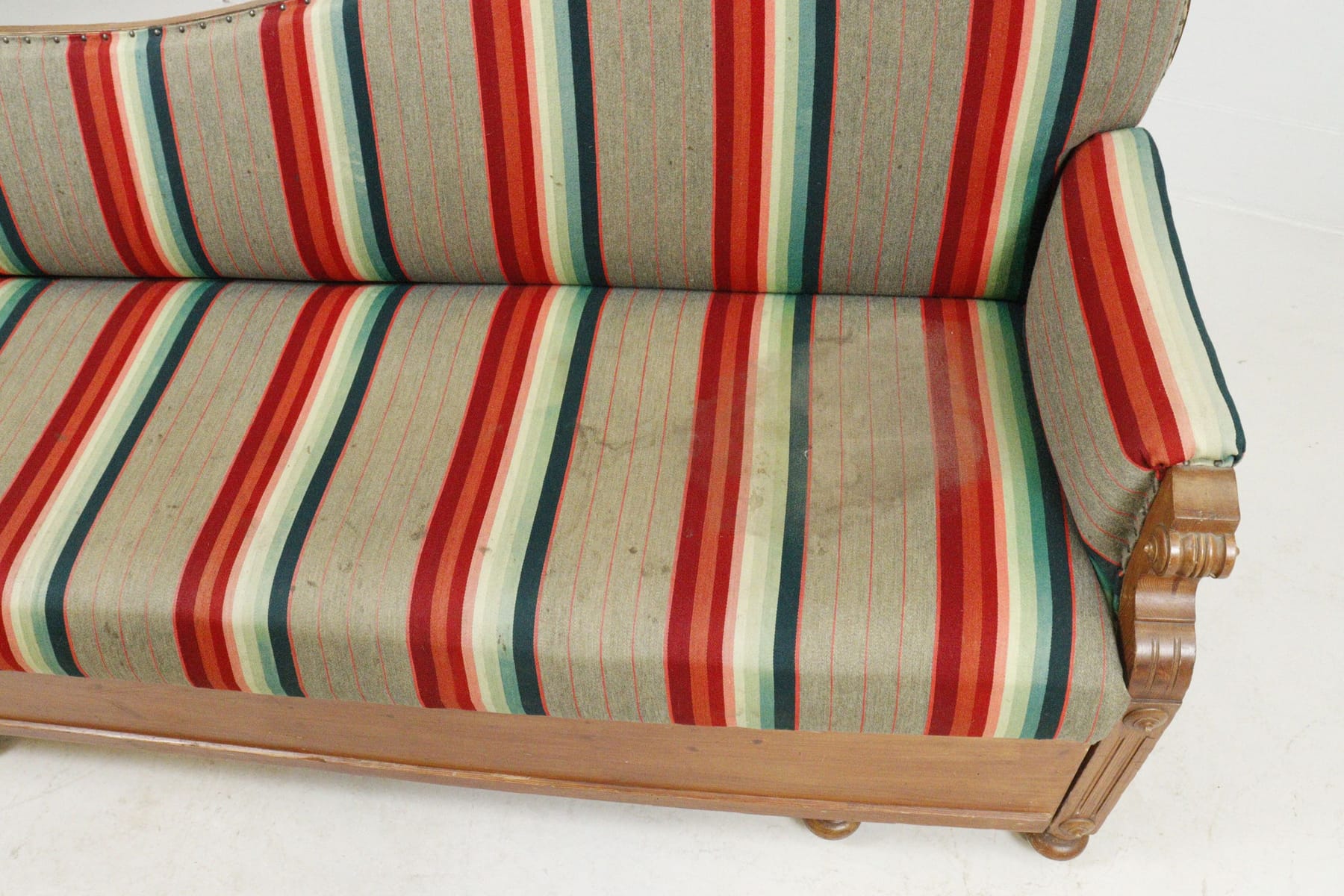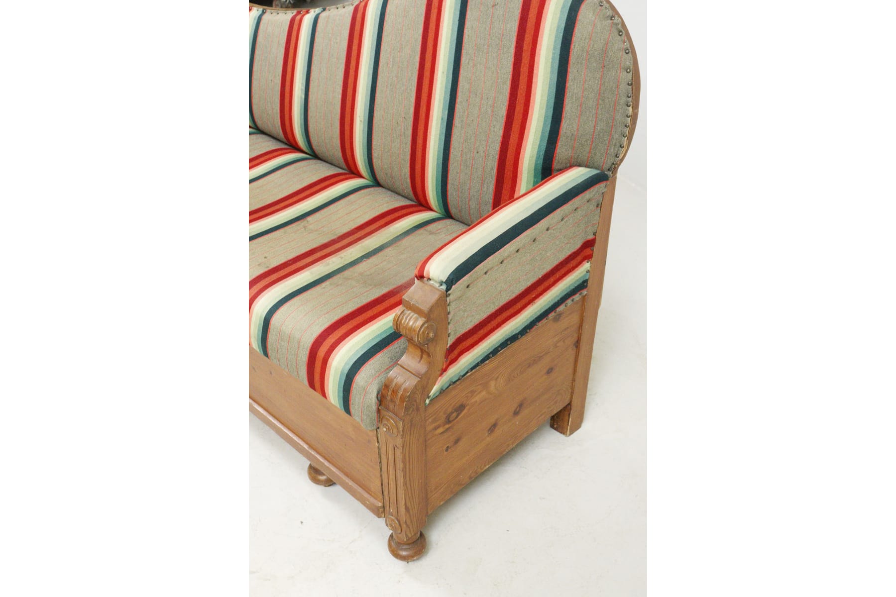 Soffa med utdragsdel, randigt tyg