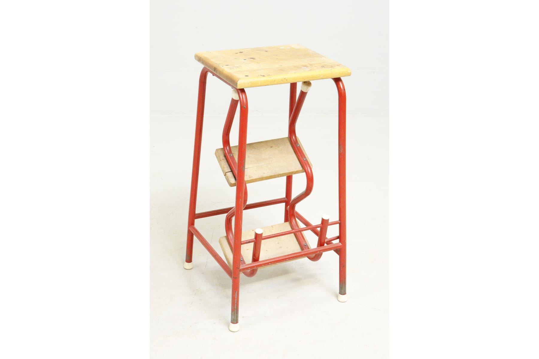 Bilder Kökspall, trä med rött metallstativ