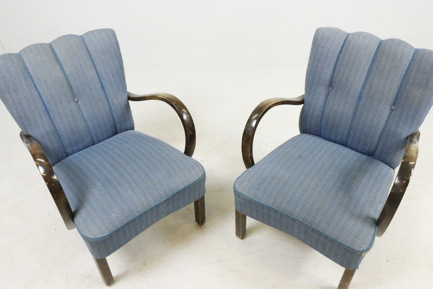 Fåtöljer, 1 par, blått tyg, 1940-tal,
