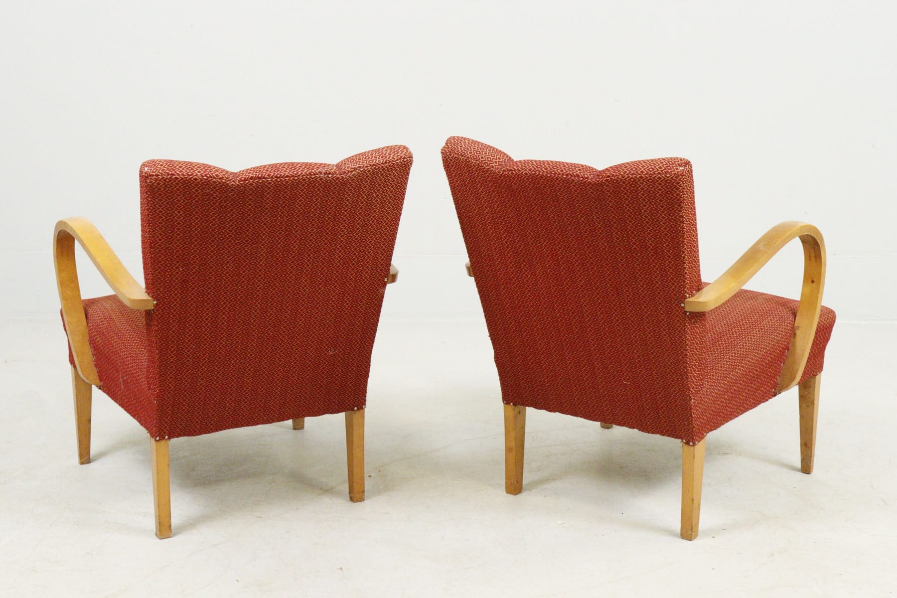 Fåtöljer, 1 par, rött tyg, 1940-tal